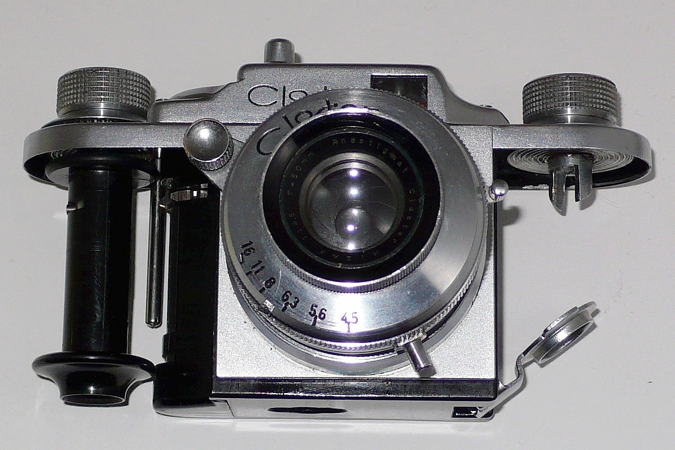 Die Closter - der Firmensitz war in der Nähe von Rom - gab es mit Mizar Anastigmat 50mm f4.5 oder mit Zelter f6.3. Die Verschlusszeiten bewegen sich zwischen 1/25 und 1/300. Baujahr 1952.