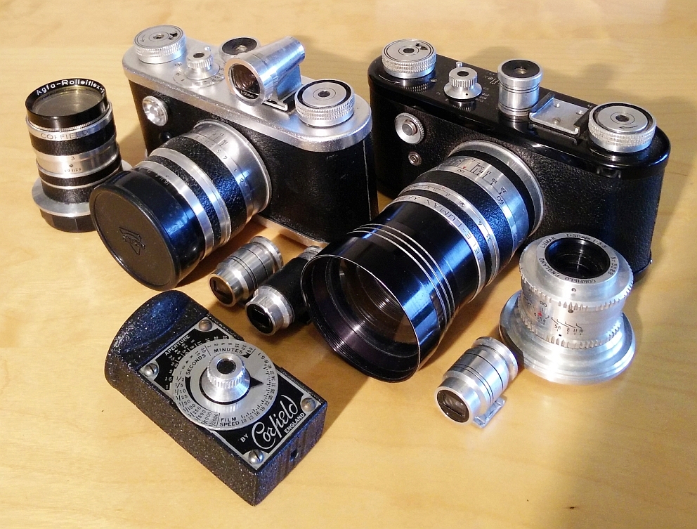 da hast Du echte Raritäten und auch noch dazu besondere Schlitzverschlusskameras. Der Periskop-Scharfeinsteller im Strahlengang, das hat schon was. Interessante Kameras. Hier in Europa (auf dem Kontinent (aus Briten-Sicht )) eher weniger bekannt.