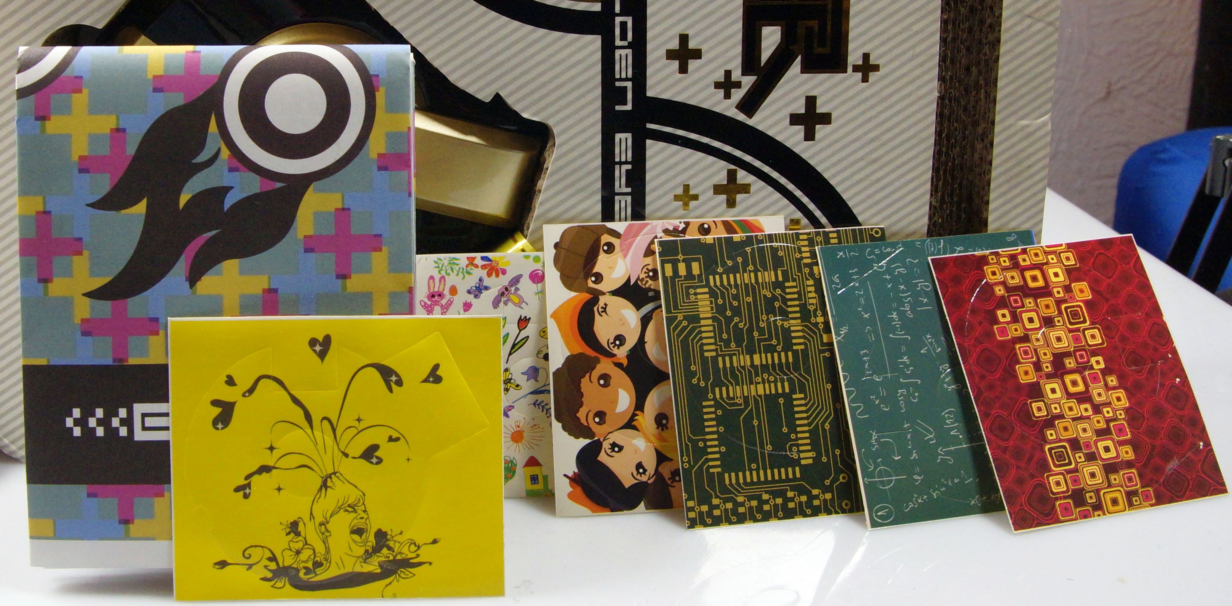 Die bunten Bildchen auf dem letzten Bild sind Aufkleber, die, wenn ich die Vorstanzung richtig interpretiere ins Innere über den Aufkleber, der wohl ein Armaturenbrett simulieren soll, geklebt werden können.