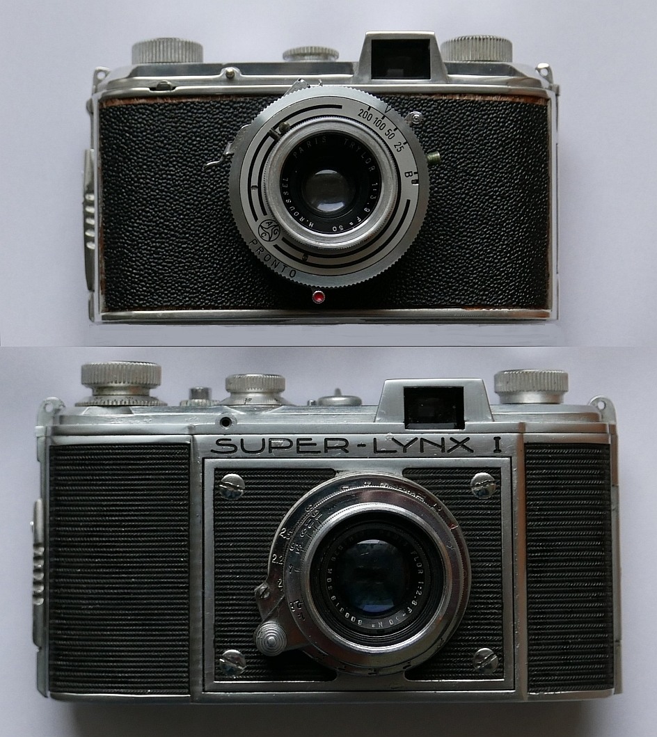 Neben dem ursprünglichen 3 x 4 Format (→ Lynx) wurde auch die etwas seltsam anmutende Zeitenreihe mit 1/75?! sowie die Platte, die das Objektiv trägt, von der Foth Derby übernommen. Es gab auch eine französische Gallus Derby Lux (in Lizenz?), bei der besagte Platte Sinn machte. Es ist jedoch gerade dieses Teil (mit den vier großen Schrauben), die den besonderen Reiz der französischen 127er Luchse ausmacht und zu einer Art Erkennungsmerkmal geworden ist. Das schöne Alu-Gehäuse, dessen feine fischgrätenartige Strukturen (schwarz lackiert oder unlackiert) eine Belederung ersetzten, ist ein weiteres Highlight. Hier wurde aus der Not eine Tugend gemacht.