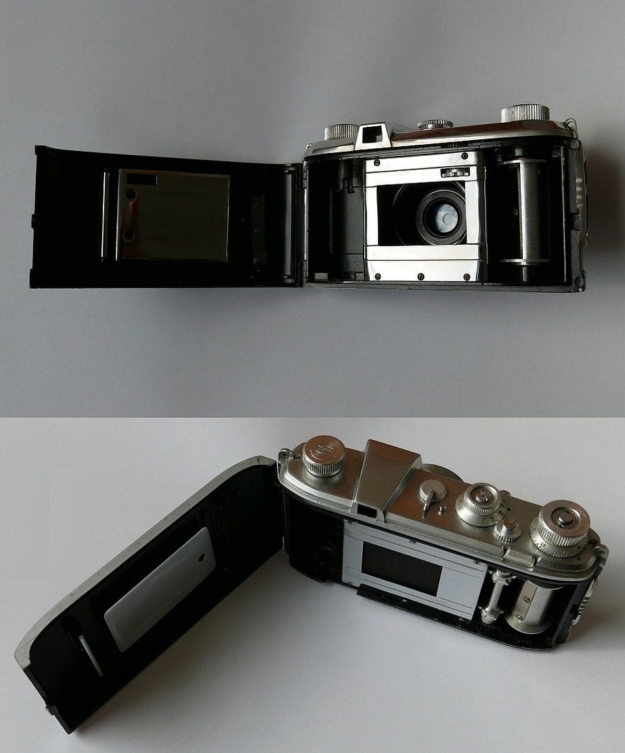 Die gezeigte KB-Kamera ist ohne Seriennummer, wurde aber mit Sicherheit vor 1951 gebaut, da es noch die Aufschrift "Pontiac Paris" trägt. Der schlampigen Bearbeitung (grobe Schleifspuren) zufolge, könnte es sich um ein Exemplar aus dem ersten Baujahr 1948 handeln. Ich werde nie verstehen, wieso die Materialknappheit in der Nachkriegszeit auch noch mit Nachlässigkeit hinsichtlich der Bearbeitung einher ging. Selbst ein Mangel an geeigneten Schleif- bzw. Poliermaschienen hätte mit etwas Handarbeit ausgeglichen werden können. Alpa konnte das, aber glücklicherweise war ja die Schweiz vom 2. WK nicht so stark betroffen.