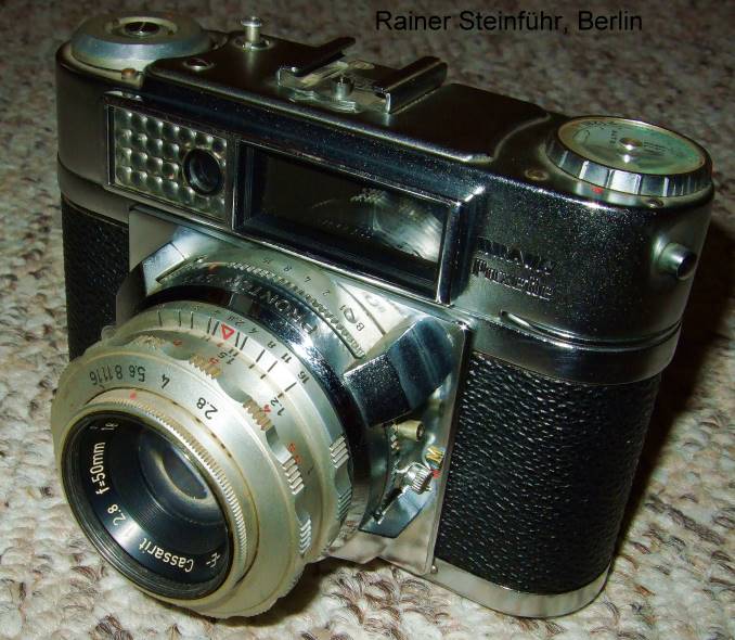 Diese Kamera gab es auch mit einem Carl Zeiss Tessar 2,8/50mm zu kaufen.
