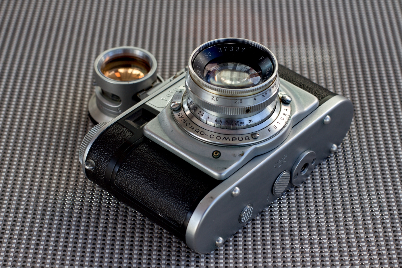 Willkommen im imaginären Futura-Fan-Club! Wegen des gekuppeltem Entfernungsmessers, der guten Qualität und der runden Schmalseiten wegen auch „Badische Leica“ genannt, hat natürlich jeder Freiburger Sammler mindestens eine in der Vitrine. Der übliche Compur-Rapid wurde „verkehrtherum“ eingebaut. Das brachte zwar die Gefahr von Vignettierungen, erlaubte aber Wechseloptiken ohne dort eingebaute Zentralverschlüsse. Das war auch damals bei der Voigtländer Prominent ganz neu.