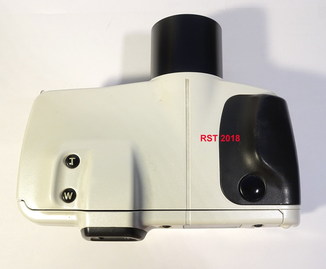 eine bemerkenswerte Kleinbild-Sucherkamera mit "Spiegelreflex-Feeling". In diesen Jahren um 1985-1995 gab es so manche Kameras, die leicht skurril aussahen. Die Industrie versuchte sich an Autofokus-Zoom-Kameras mit mehr oder weniger großem Erfolg und hin und wieder mit etwas merkwürdigen Design-Ideen.