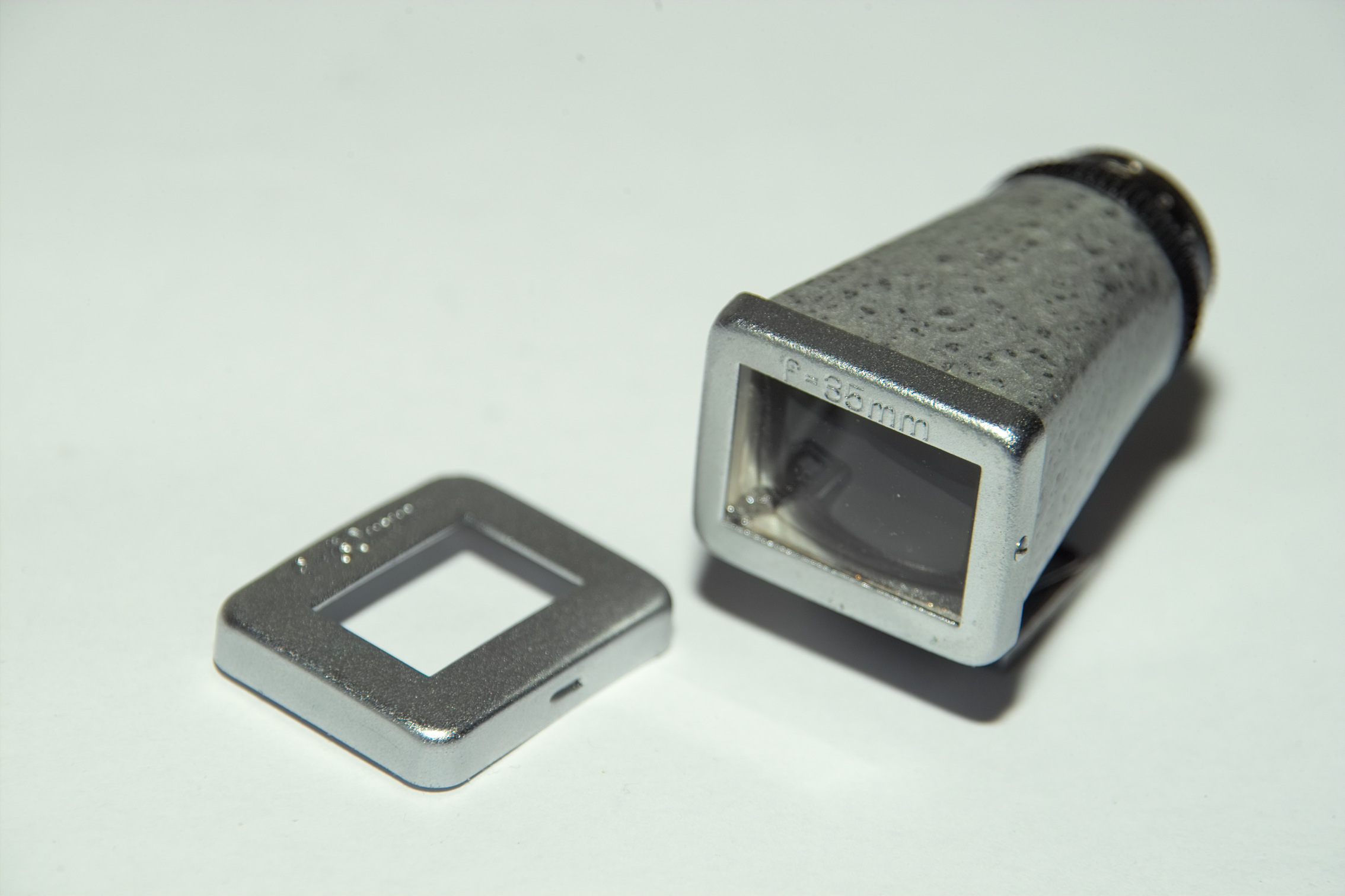 Der Aufstecksucher an sich ist für 35mm Brennweite ausgelegt, es gibt dann dafür diese aufsteckbaren Blenden für 50 mm und 90 mm. Damit ist dann auch das gesamte Objektivprogramm für die Altix abgedekt.