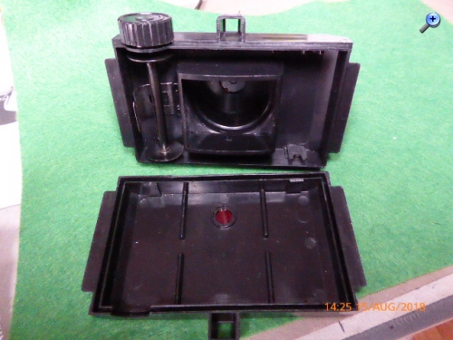 Heute vom Flohmarkt eine Orion Simplicite Kamera 127er Film. Made in Hong Kong. Gröse etwa BxHxT=10 x 7 x6 cm Einen alten Film habe ich mal auf 75 cm zugeschnitten. 4,5 cm breit und die Länge entspricht etwa 16 Bilder 4,5-5 cm . Man könnte einen 120 er Rollfilm auf die Breite von 4,5 zuschneiden, auf die Spule aufrollen. Hat das schon mal jemand von euch gemacht?