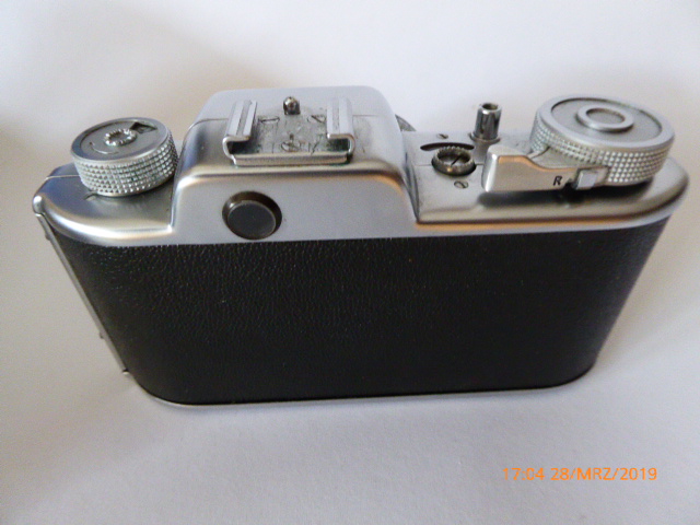 Variante 2: Filmempfindlichkeitseinstellung im Aufzugsknopf (DIN/ASA); Belichtungstabelle auf dem Kamerarückdeckel fehlt; Filmtransportknopf längs und quer geriffelt; Zeitenring mit "Germany"-Gravur umschließt Verschlußtubus; Seriennr. ca. 50.000 - 60.000 Variante 2: