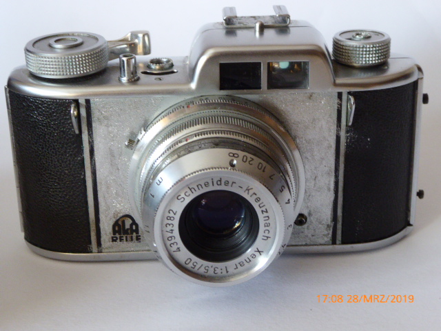 Hersteller Apparate- und Kamerabau GmbH (AKA), Friedrichshafen (Bodensee) Typ AKA relle I Einführung 1954 Ausverkauf 1957 Neupreis 250 DM Filmtyp 135er, 24 x 36 mm Optik wechselbar, hier Schneider-Kreuznach Xenar 1:3,5/50