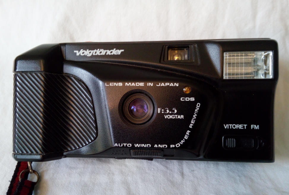 Hallo, ich möchte euch eine etwas merkwürdige Kamera vorstellen. Sehr klobig (14,5 cm breit) und einem lustigen film drive (rotes Ei /weisses Ei) Sehr laut, das Zurückspulen läuft so lang man den Schieber gedrückt hält, Objektiv Abdeckungsschieber und ISO Einstellung liegen gefählich nah beieinander. Sehr billig hergestellt, wahrscheinlich aus Hong Kong oder China. Voigtländer Vitoret FM mit Voigtar F 3,5, CDS, Auto Wind und Power Rewind. Lens made in Japan. Eigentlich lustig und nichts Besonderes das ganze, wenn man die Voigtländer Geschichte im Kopf hat vielleicht eher traurig. Sei`s drum.