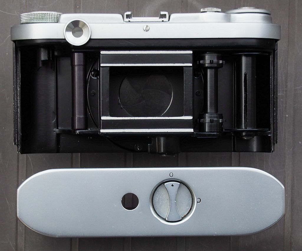 Die Kamera selbst ist ziemlich schwer (Gehäuse 470g, Objektiv 147g) und vermutlich auch solide. Der Antrieb und die Bedienelemente laufen auch heute noch seidenweich (ich habe nur in den Verschluss einen Minimal-Stoß Kriechöl eingebracht (das "Original", das so schön nach Schweisestall riecht)). Was mich irritiert, sind die mishandelten Schrauben (ausschließlich) an der Kamerafront. Ich war das nicht. Und wenn der Erstbesitzer je einen Schraubendreher benutzt haben sollte, dann sicher nicht an dieser Kamera. Aber schau Dir ' mal Bilder von anderen Exemplaren dieses Typs an...