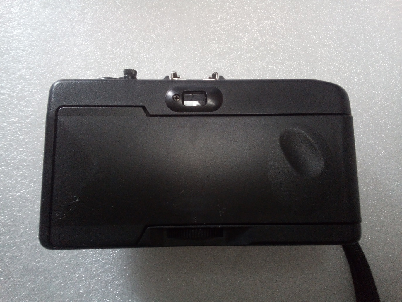 Oberseite: Auslöser, Blitzschuh mit Mittenkontakt, Filmrückspulkurbel