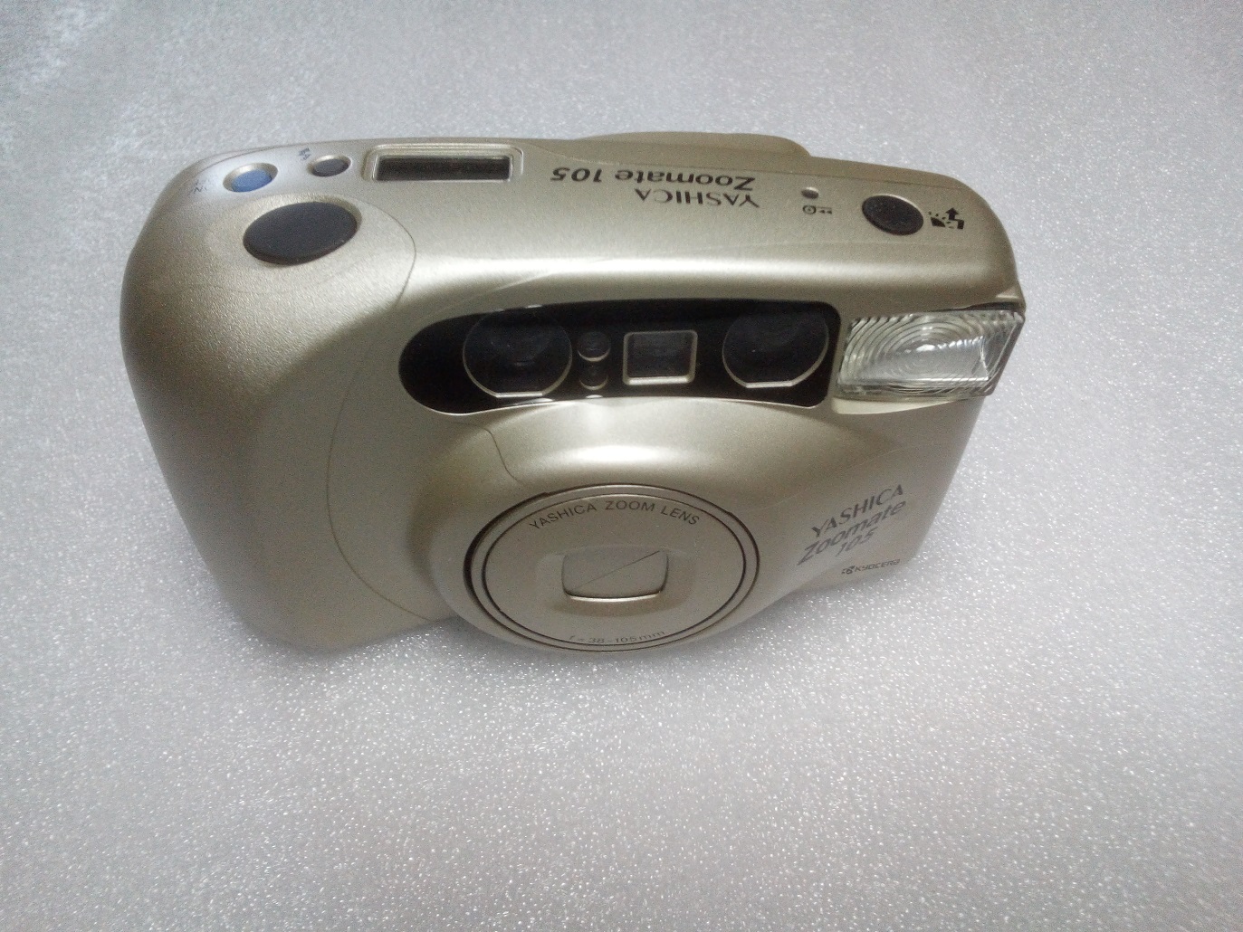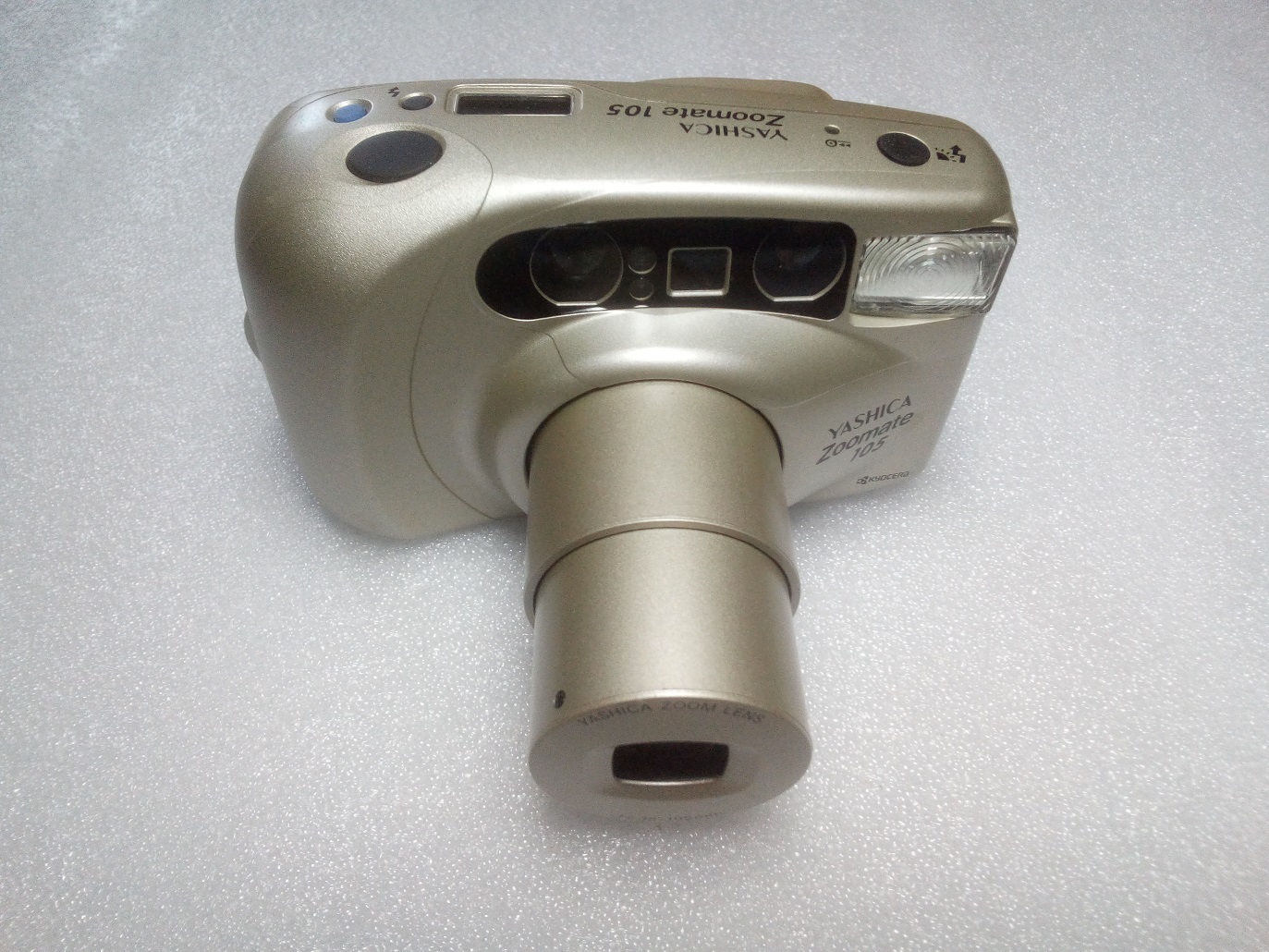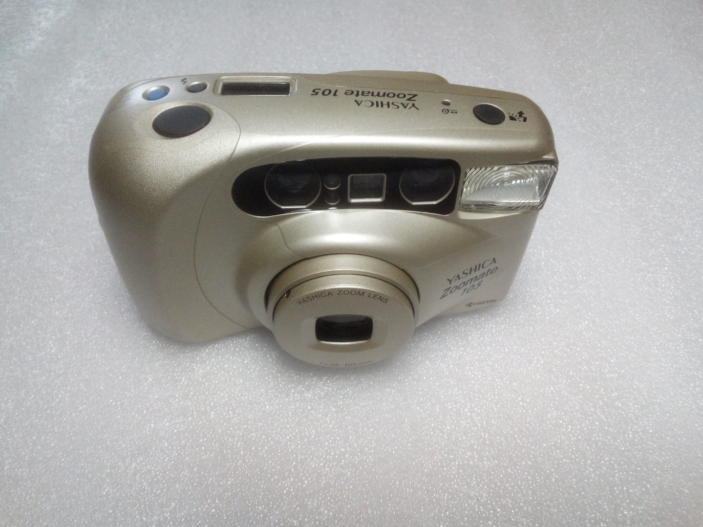 Hersteller: Kyocera, Japan Typ: KB-Sucherkamera, 24 x 36 mm, DX-Kontakte für ISO 100 - 800 Objektiv: Yashica Zoom Lens 38 - 105 mm, 6 Linsen Fokus: Autofokus mittels Infrarot, 1 m - unendlich Verschluss und Verschlusszeiten: keine Informationen gefunden Selbstaulöser mit ca. 10 sec. Verzögerung Automatikblitz (abschaltbar) Stromversorgung durch 2 x 1,5 V AA Batterien