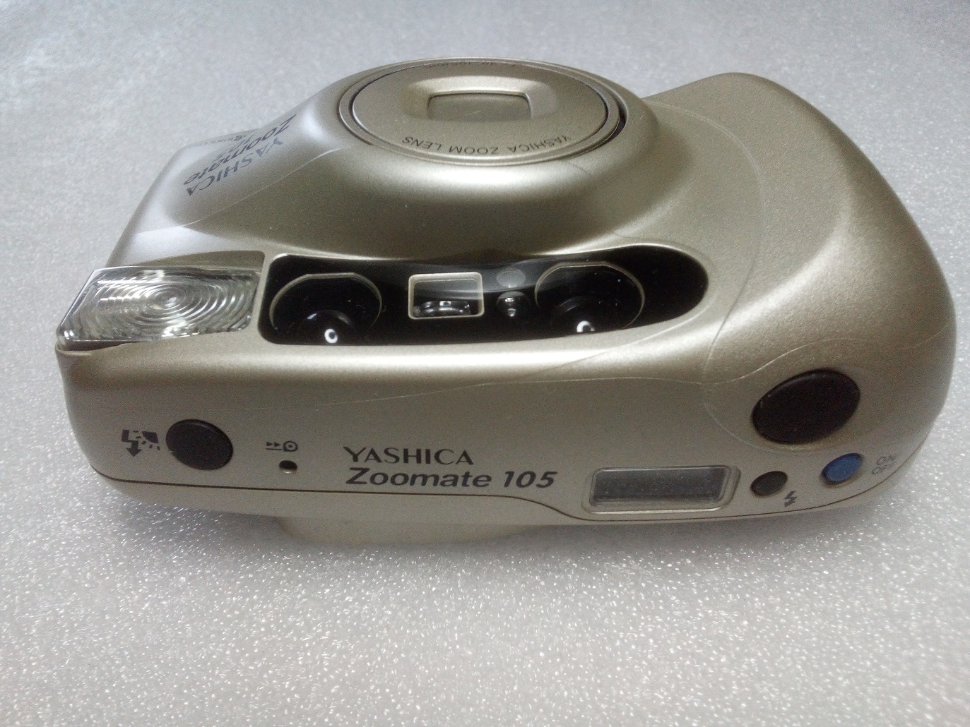 Ebenfalls für lange Zeit verborgen in einem alten Schrank lag diese Yashica Zoomate 105. Leider waren im Laufe der Jahre die Batterien ausgelaufen. Daher war eine gründliche Reinigung des Batteriefachs nötig. Nun scheint sie wieder einwandfrei zu funktionieren.