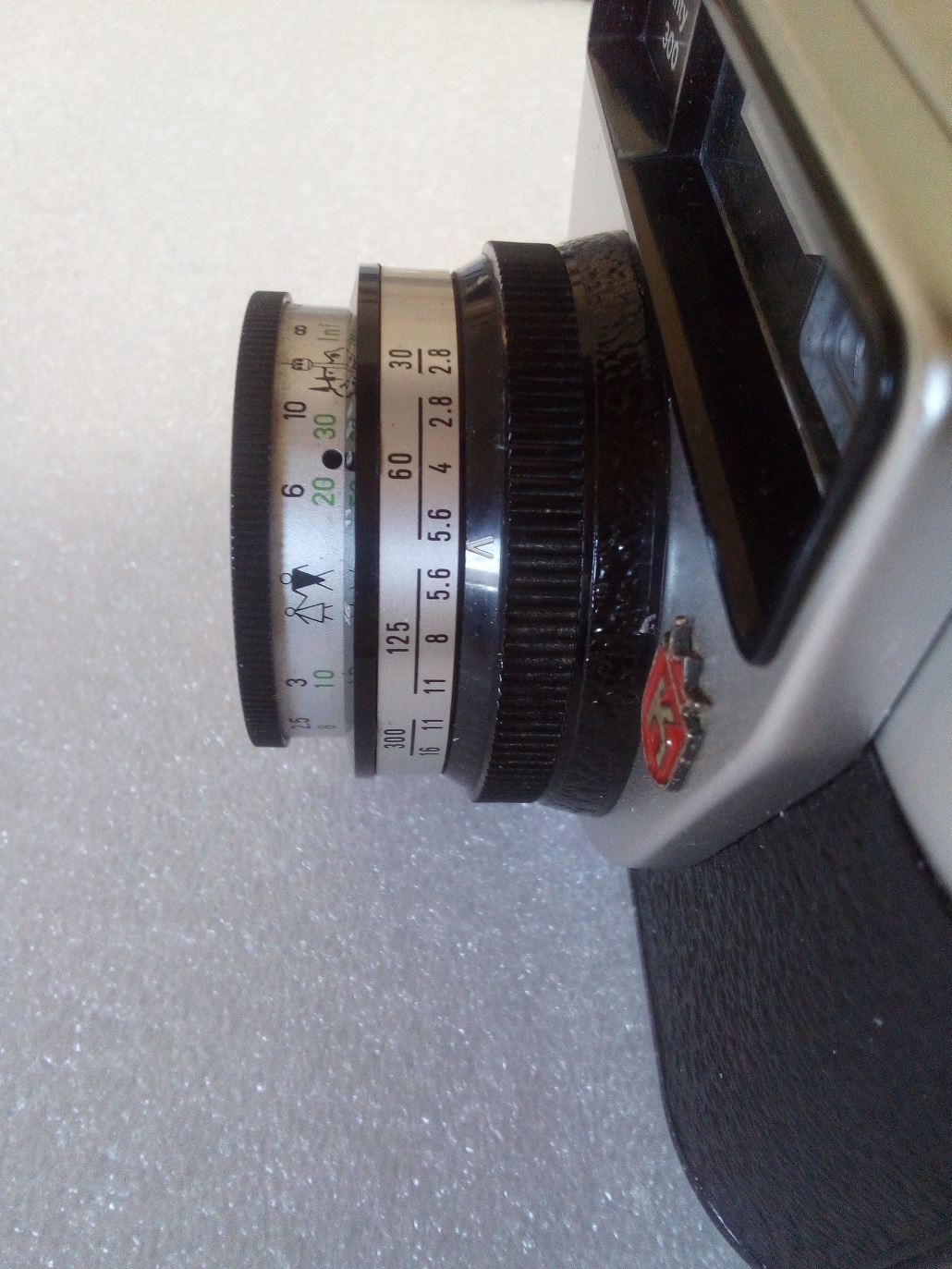 Hersteller: Regula Werk King KG, Bad Liebenzell Typ: KB-Sucherkamera mit Leuchtrahmen, 24 x 36 mm, max. 36 Aufnahmen Baujahr: 1970 Objektiv: ISCO Göttingen, COLOR-ISCONAR 1:2,8 / 45 mm Verschluß: RECTAMAT Zentralverschluß, 1/30 - 1/300 sec. und "B" Fokus: 1m - unendlich