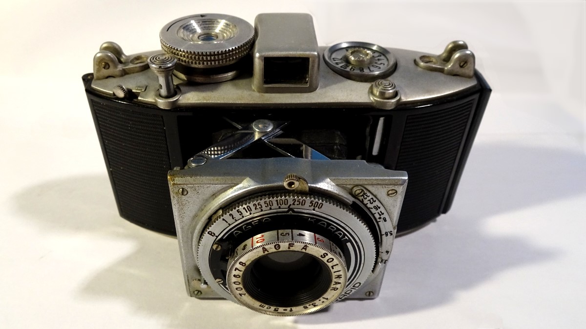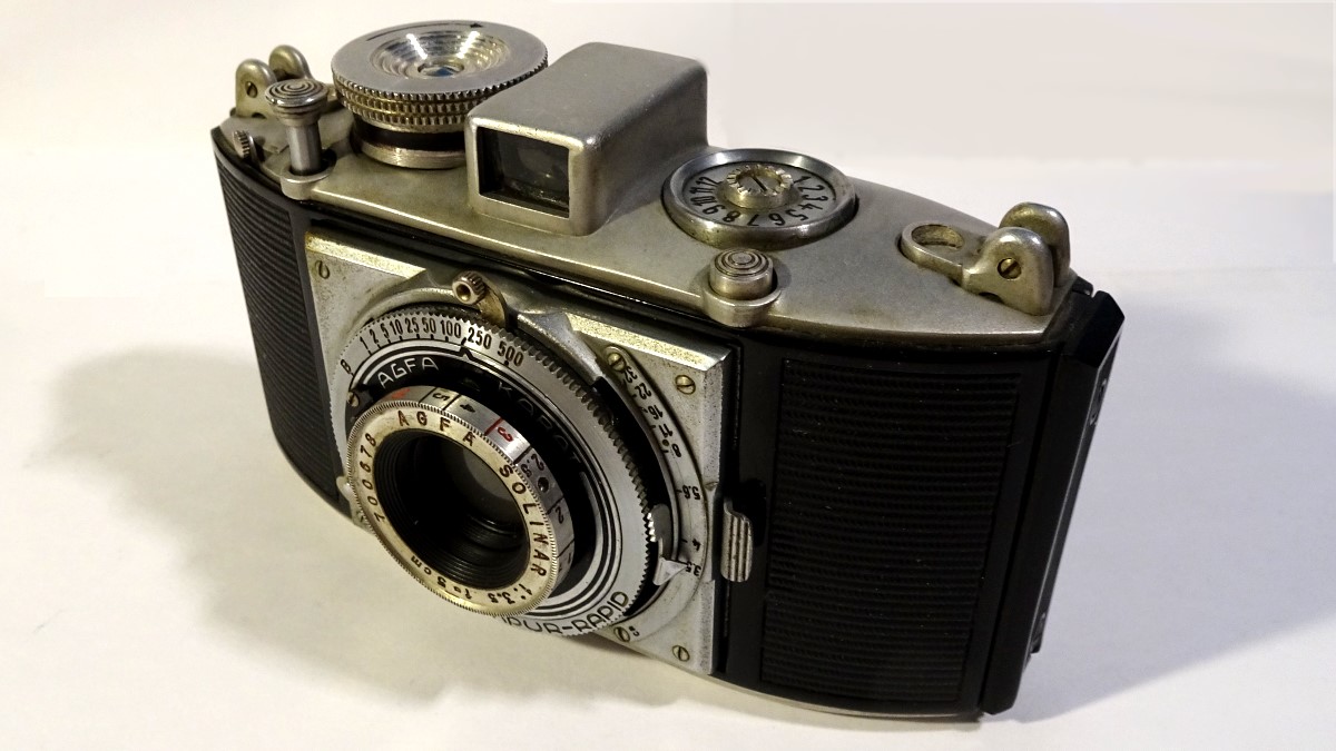 Die folgenden Bilder zeigen im Vergleich dazu die Agfa Iso-Rapid IF von 1964, die auch die Karat-Patronen (aber mit DIN-Markierung) nutzte: