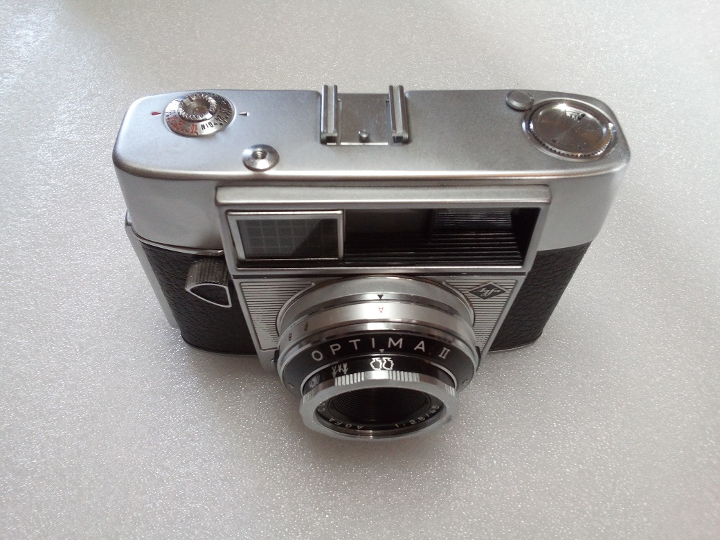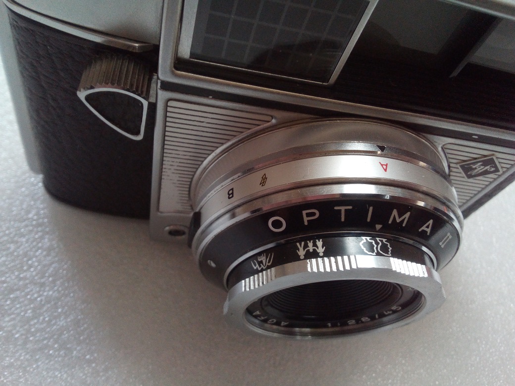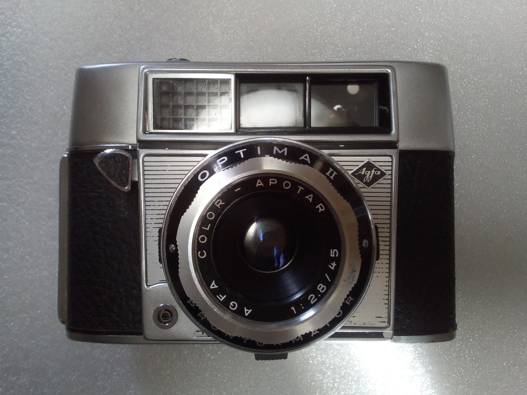 Hersteller: Agfa Kamerawerke, München Modell: Optima II (mit Metallauslöser) Typ: KB-Sucherkamera mit automatischer, selenzellengesteuerter Belichtungsautomatik, 24 x 36 mm Baujahr: 1960 - 1964 Verschluß: PRONTORMATOR, "B", 1/30 - 1/250 sec Blenden: 2,8 - 22 Objektiv: Agfa COLOR-APOTAR, 1:2,8 / 45 mm Fokussierung: über Symbole Neupreis (1960): 238,-- DM. (1962): 258,-- DM Gewicht: ca 700 g