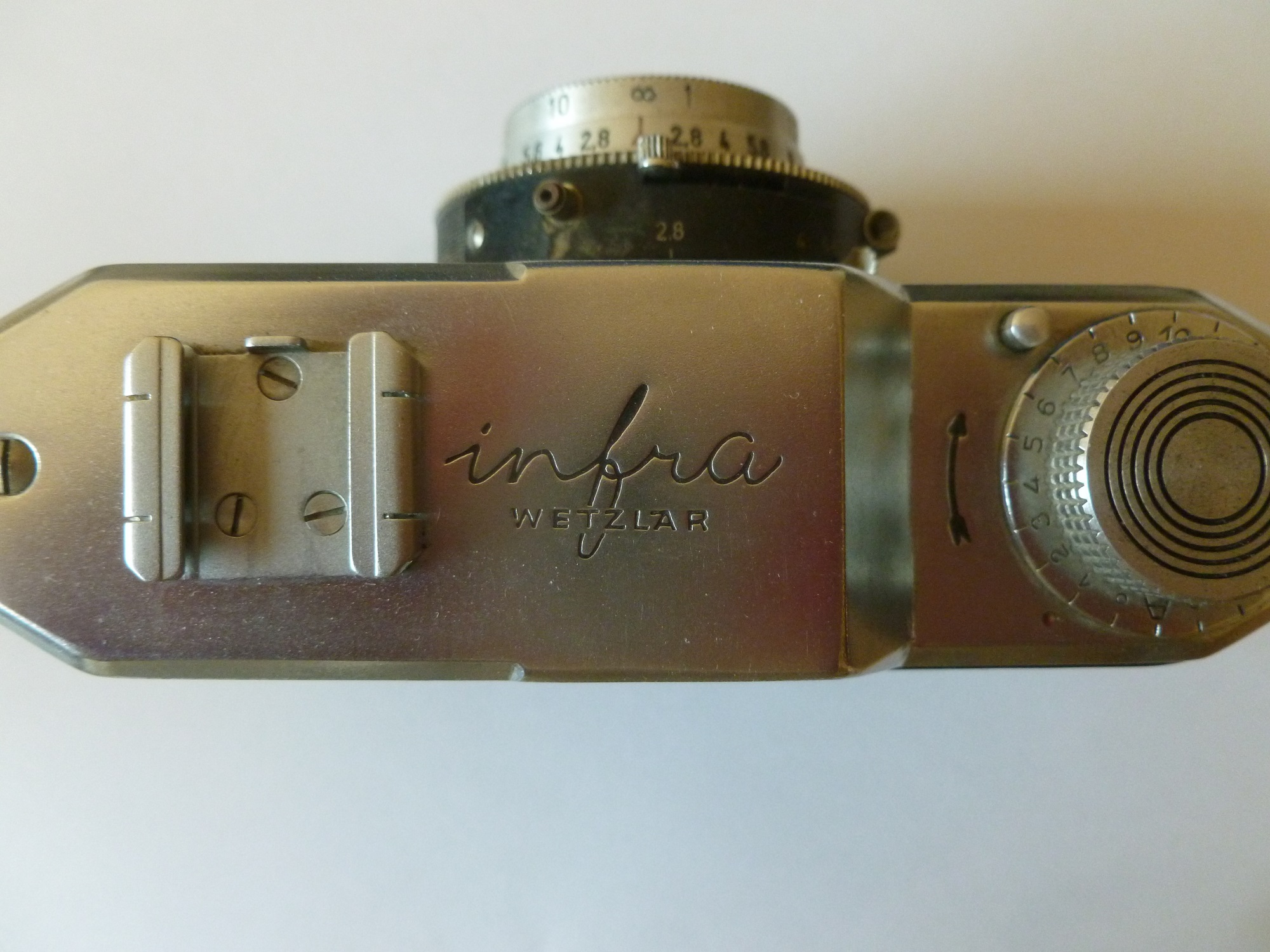 eine eher seltene Kamera aus Deutscher Nachkriegsproduktion. Hersteller: Bernhard Julius Oehler aus Wetzlar (nicht zu verwechseln mit Heinrich Oehler, Wetzlar) Oehler war ein 1919 gegründetes feimechanisches Unternehmen welches als Hauptprodukt Mikroskope fertigte. Ab,um 1950 wird eine Kleinbildkamera vorgestellt die INFRA Lt. Kadlubek soll es 4 verschiedene geben wobei die Unterschiede zu vernachlässigen sind