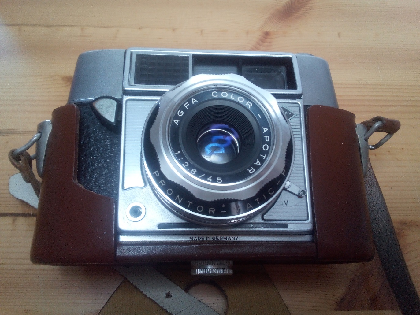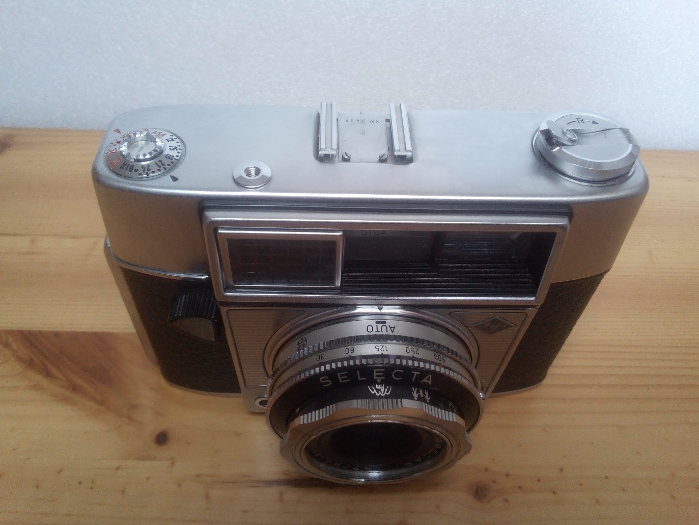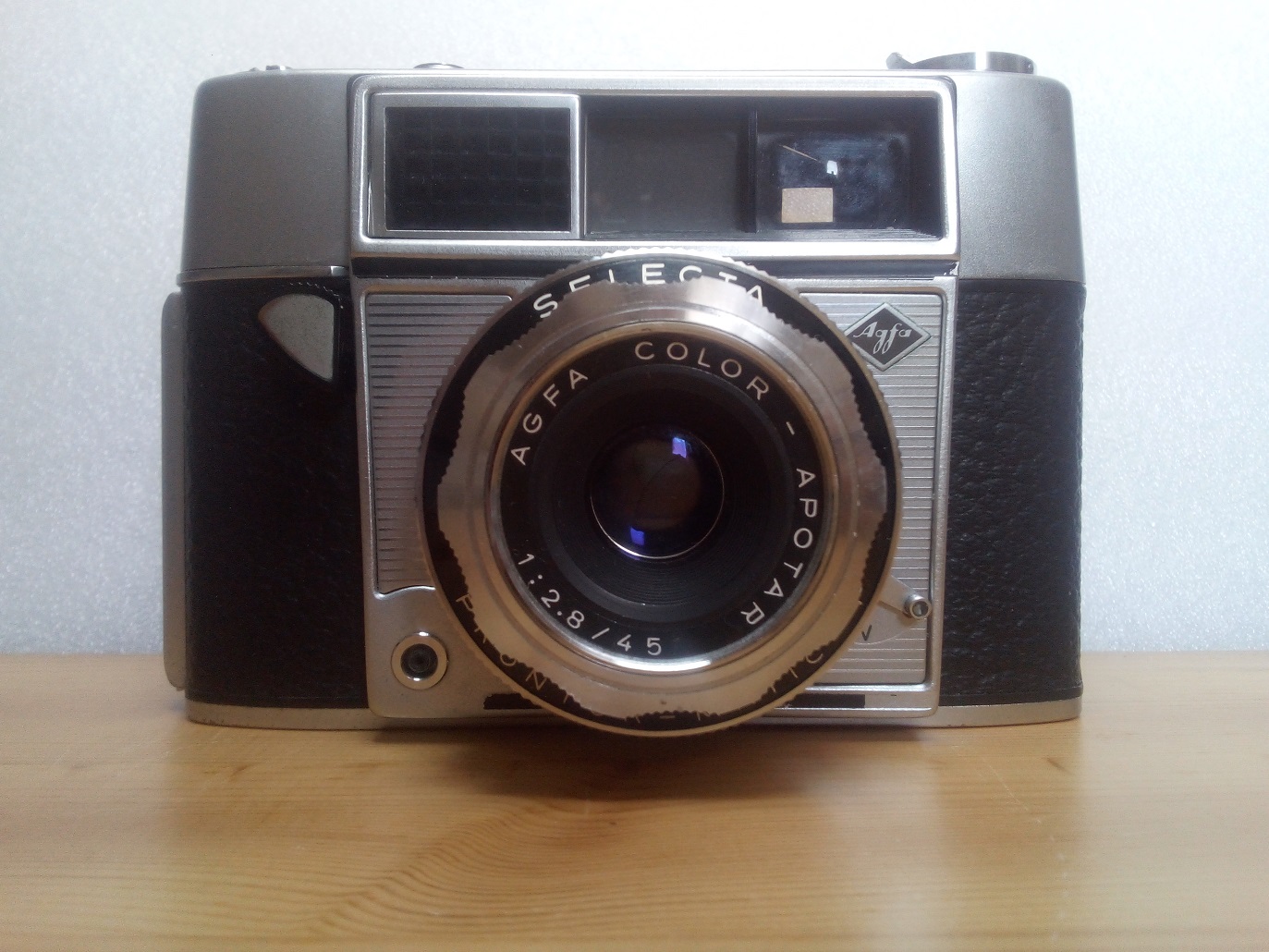 Hersteller: Agfa Kamera-Werke, München Modell: Selecta Typ: KB-Sucherkamera, 24 x 36 mm mit selenzellengesteuerter "selektiver" Belichtungsautomatik und in den Sucher eingespiegelten Blendenwerten Baujahr: 1962 Seriennummer: KM 3469 Verschluß: PRONTOR-MATIC-P, "B", 1/30 - 1/500 sec und Selbstauslöser Blenden: 2,8 - 22 Objektiv: AGFA COLOR-APOTAR 1:2,8 / 45 mm Fokussierung: über Symbole oder 1 m - unendlich Neupreis (1962): 278,-- DM Gewicht laut Datenblatt: 685 Gramm