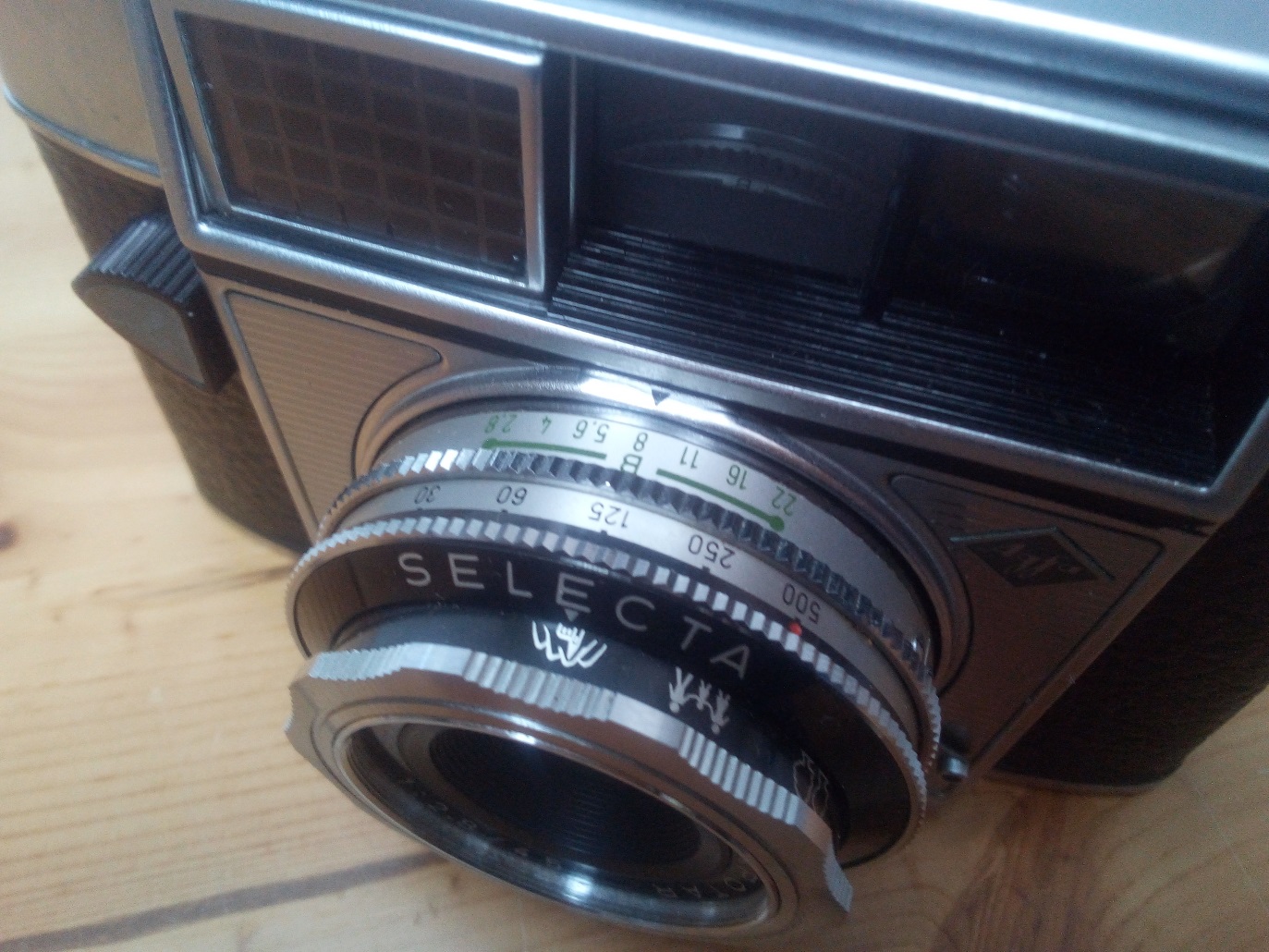 Sind die Lichtverhältnisse ungünstig und es muß "geblitzt" werden bietet die Selecta folgende Möglichkeiten an: a) Blitzlichtbirnchen: hier muß die Verschlußzeit auf 1/30 sec eingestellt werden, die Blende ist frei wählbar b) Elektronenblitz: die Verschlußzeit ist frei wählbar und die Blende ergibt sich aus der Leitzahl des Blitzgerätes