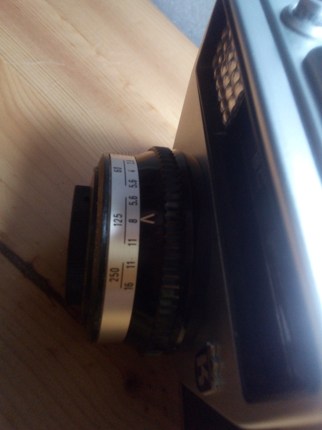 Im Gegensatz zu der ebenfalls erhältlichen Regula sprinty BC 300 erhielt die Regula sprinty BC den hauseigenen RECTAMAT Verschluß mit einer maximalen Geschwindigkeit von 1/250 sec. Auch bei der hier gezeigten Kamera blieb sich King seiner Linie treu und faßte, wie gewohnt, Blenden und Verschlußzeiten in Gruppen zusammen. Da dies bei den anderen King Kameras hier im Museum bereits erschöpfend behandelt wurde erspare ich mir an dieser Stelle die Einzelheiten dieser King´schen Besonderheit. Nur so viel: der Belichtungsmesser besitzt auch diese Gruppeneinteilung, zeigt aber immer nur einen Blendenwert innerhalb dieser Gruppe an.