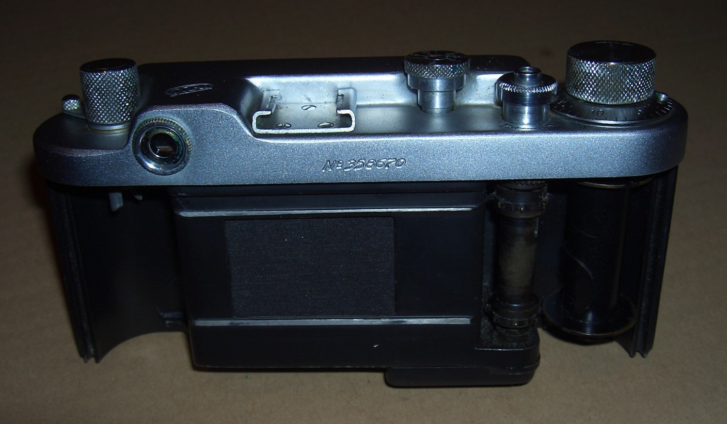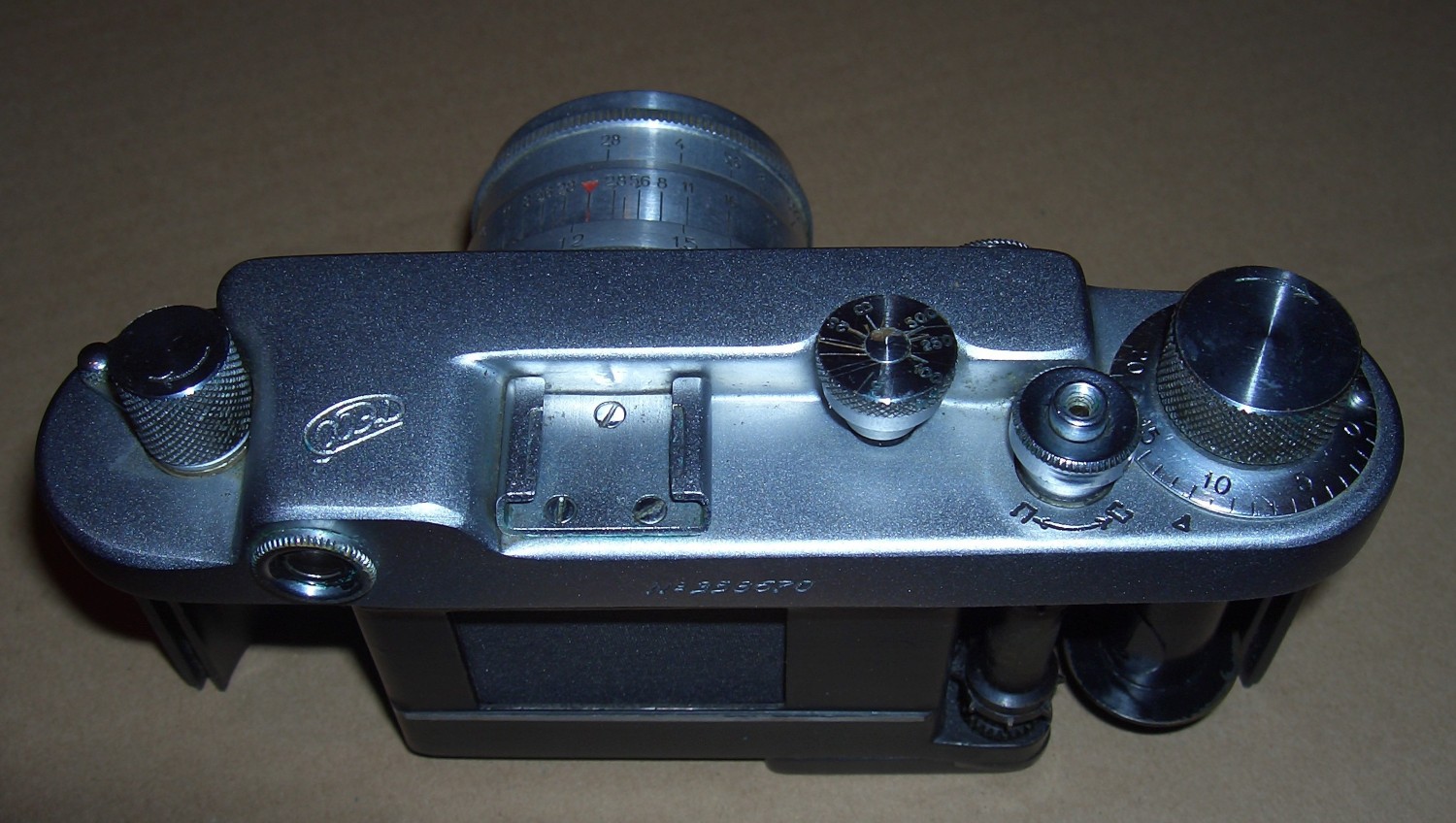 Hallo Okular, das dürfte eine der vielen Varianten der FED-2 , Kiev handeln, eine Art sowjetischem "Leica-Nachbau". Im WEB findet man verschiedene Varianten.