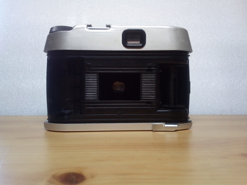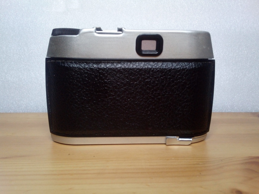 Ungewöhnlich an dieser Kamera ist, dass sich der Auslöser auf der linken Seite befindet. Der Schnellspannhebel befindet sich ebenfalls an ungewohnter Stelle und ist rechts unten zu finden.
