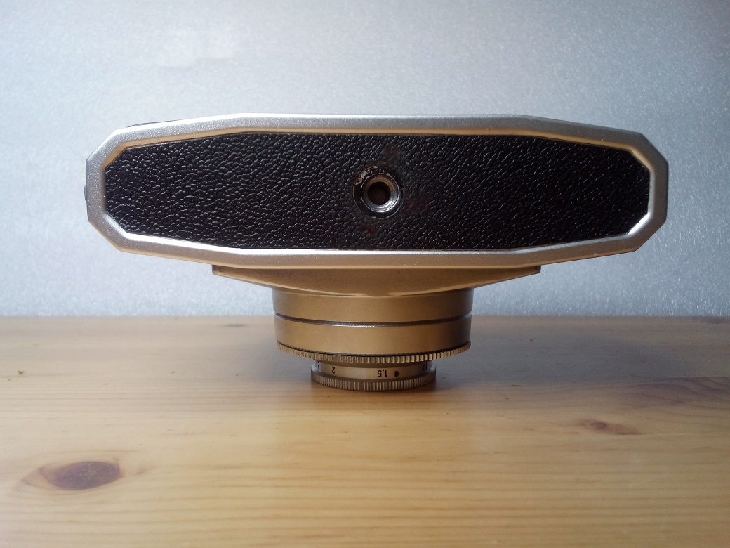 sind auch meine Anmerkung zu deren eingebautem Metrawatt-Belichtungsmesser. Meine hatte nicht so ein Kläppchen davor, aber links und rechts einen Kontakt, auf den eine Selenzelle von der Größe ungefähr eines Dias aufgeschoben werden konnte. Völlig ungerichtet, aber empfindlich genug für jede nächtliche Situation.