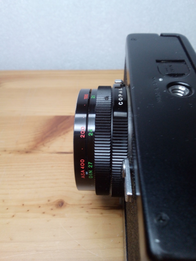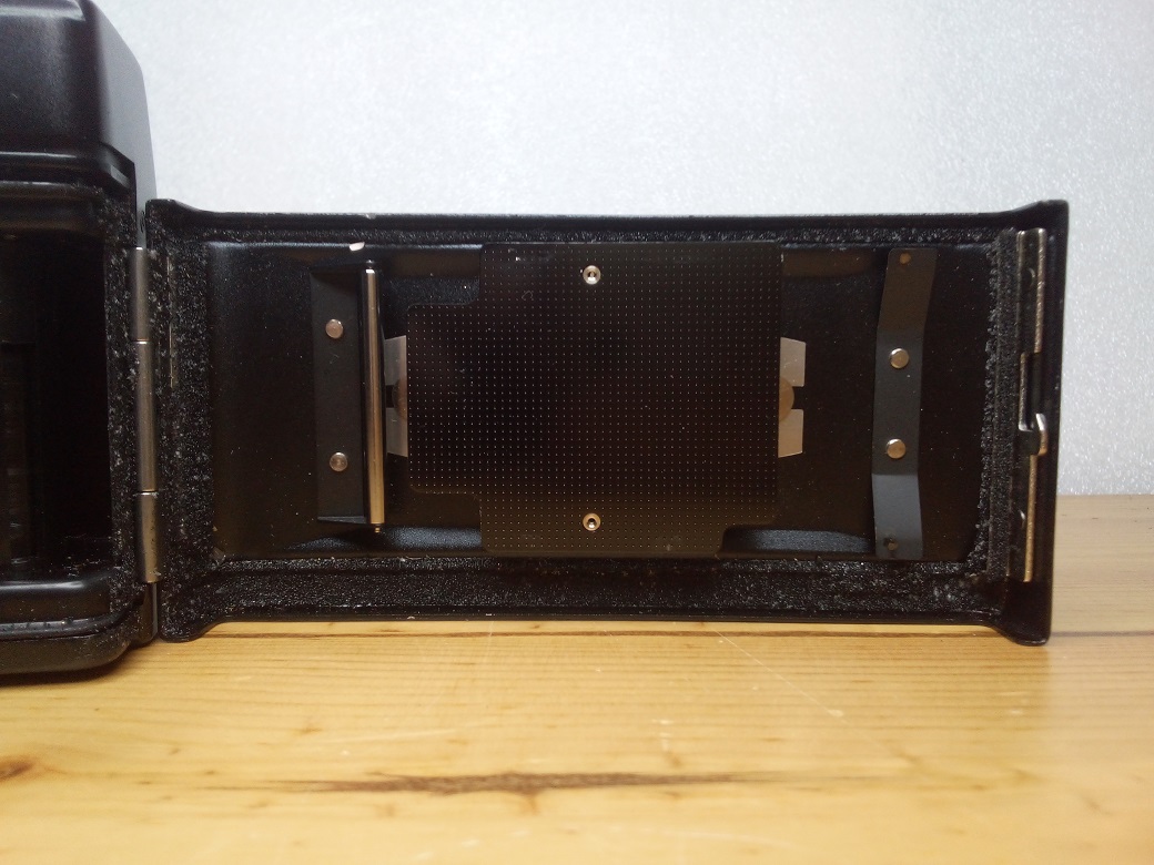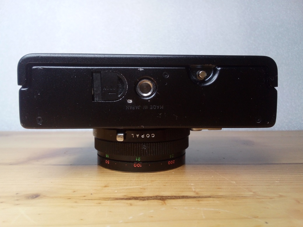 Die Unterscheidungsmerkmale sind schnell aufgezählt: der Schnellspannhebel ist vom Kameradeckel an eine Position zwischen Deckel und Gehäuse gewandert, der Auslöser ist nun als rechteckige Taste ausgeführt, das Filmzählwerk wurde an anderer Stelle positioniert und am Gehäuse befindet sich nur noch eine Öse für einen Trageriemen. Das Gehäuse selbst ist komplett in schwarzer Farbe gehalten.