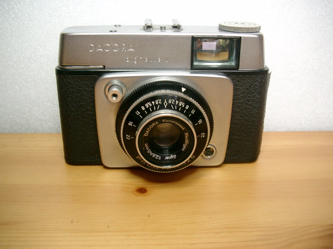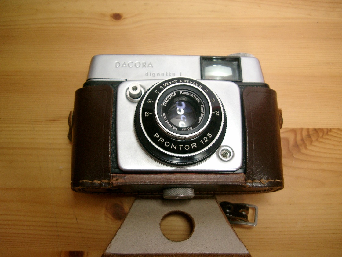 wo ich diese Kamera sehe fällt mir eine dazu gut passende Geschichte aus meiner Jugendzeit ein: Ein Berufsschulkollege bekam 1964 vom Pappa eine Dacora dignette I geschenkt. Das ist an sich ist nichts besonderes, aber: Er und sein Vater fotografierten auch damit Telefonzellen, Strassen-Postbriefkästen, Strassen Wasserpumpen, frei stehende Strassenuhren.