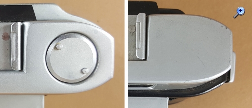 Der Einstellring für den Filmzähler bei der Beirette k (links) fiel bei der Beirette ka (rechts) weg.