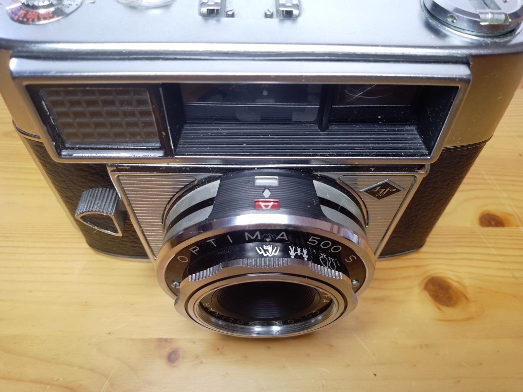 als weiteres Modell der Optima Serie brachte Agfa 1963 die Optima 500 S heraus. Neben den gewohnten Vorzügen der anderen Kameras dieser Reihe besaß die 500 S als erste Kamera der Serie das 4-Linser Color-Solinar 2,8/45 Objektiv. Weiterhin spendierte Agfa diesem Fotoapparat einen gekuppelten Entfernungsmesser (für Schnappschüsse konnte weiterhin über Symbole fokussiert werden) und eine Blendenautomatik für Blitzlichtaufnahmen.