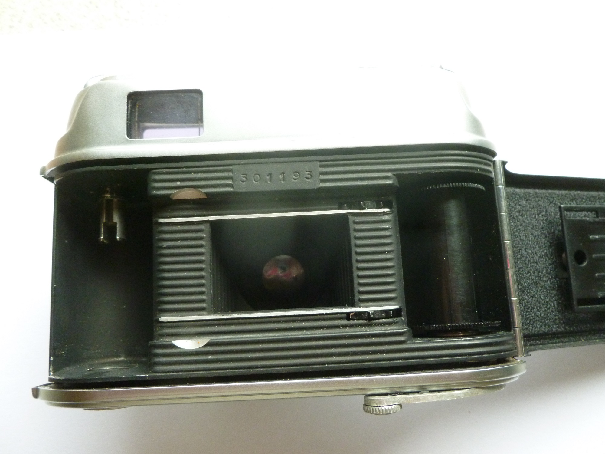 Typ: 35 mm Rollfilmkamera/Sucherkamera Sucher: Leuchtrahmen 13 x 19 mm Schnellschalthebel am Boden Filmzählwerk am Boden Schnellschalthebel und Auslöser nicht beledert Entsperrknopf zum zurückspulen Objektiv: Isco ARETAR 1:2,8 x 45 Beschriftung in mtr. und feet Verschluss: Vario B 25 50 200 kein Selbstauslöser Filmtransport: 2 Stachelwalzen seitlich Aufwickelspule: 23 mm Nr. des Gehäuses 301193