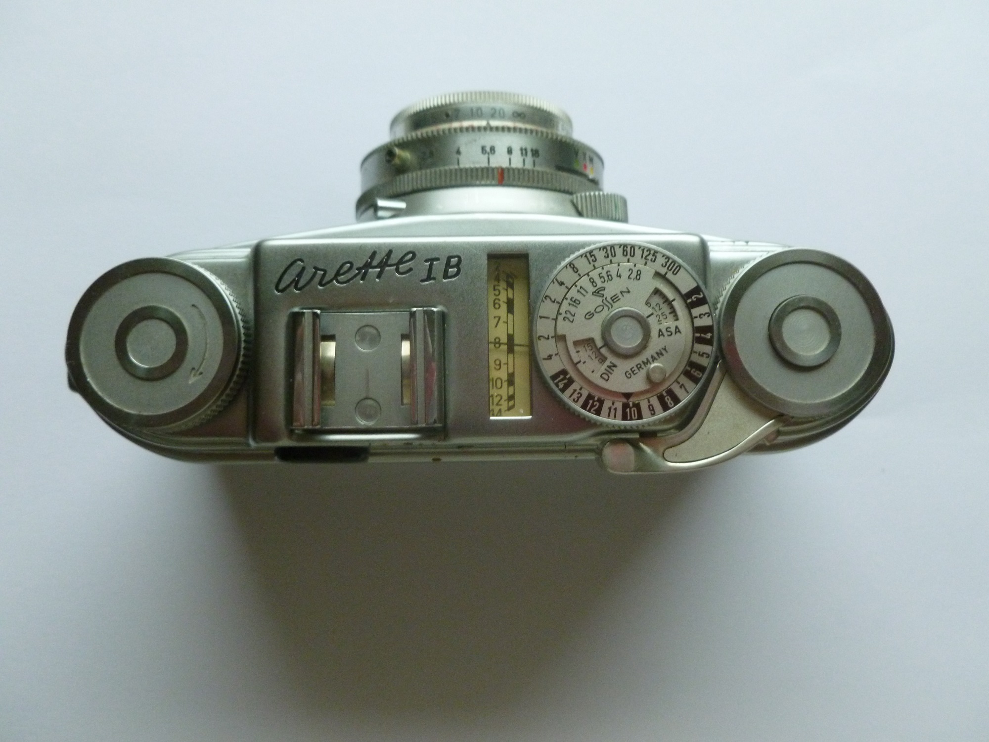 Meine arette ist mit einem Isconar 1:2,8/45 Objektiv ausgestattet und die PC-Buchse ist auch etwas versetzt.