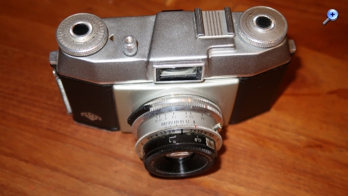 Das Gehäuse ist aus Kunststoff und entsprechend leicht. Man gab sich viel Mühe der Kamera einen wertigen Eindruck zu verschaffen. Das Vorderteil und die Drehknöpfe sind lediglich Silber angemalt, nur die obere Kappe ist aus Aluminium gefertigt. Es gibt ein Zählwerk, Blitzanschluß, Zubehörschuh und der einfacher Sucher erfüllt seinen Zweck.