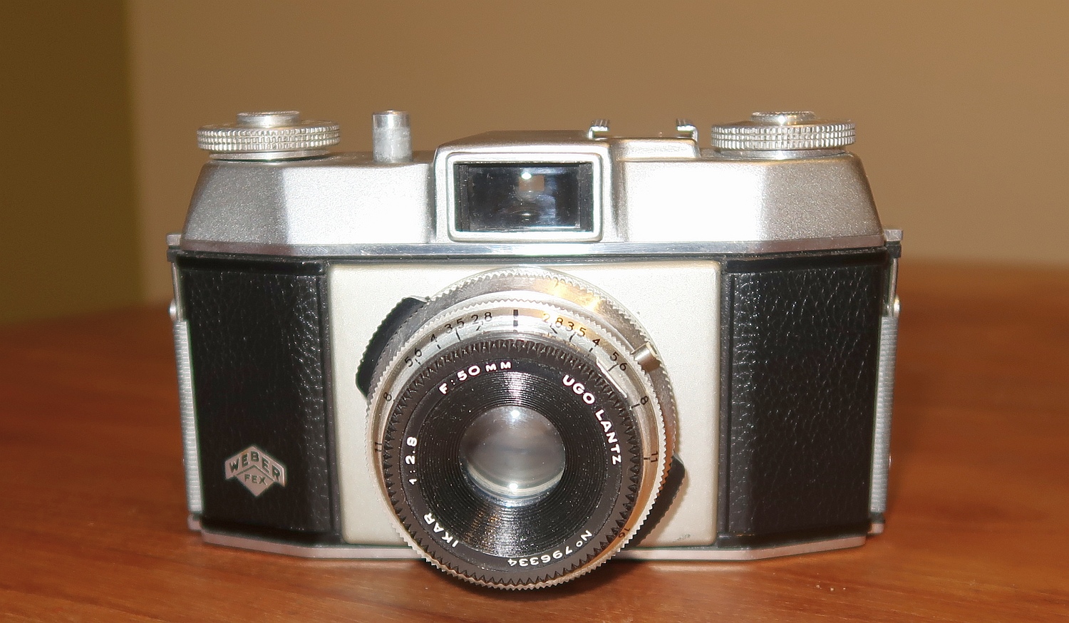 Die Weber Fex Kleinbildkamera kam 1959 auf den Markt und wurde bis 1968 in hoher Auflage gefertigt. Dieses Exemplar stammt aus dem Jahr 1962 oder 1963. Es gab eine Vielzahl von Versionen die sich, außer im Preis, so gut wie nicht unterschieden. Die einzige wirkliche Aktualisierung gab es 1964 als die Kamera anstelle der Drehknöpfe einen Schnellspannhebel und eine Rückspulkurbel erhielt.