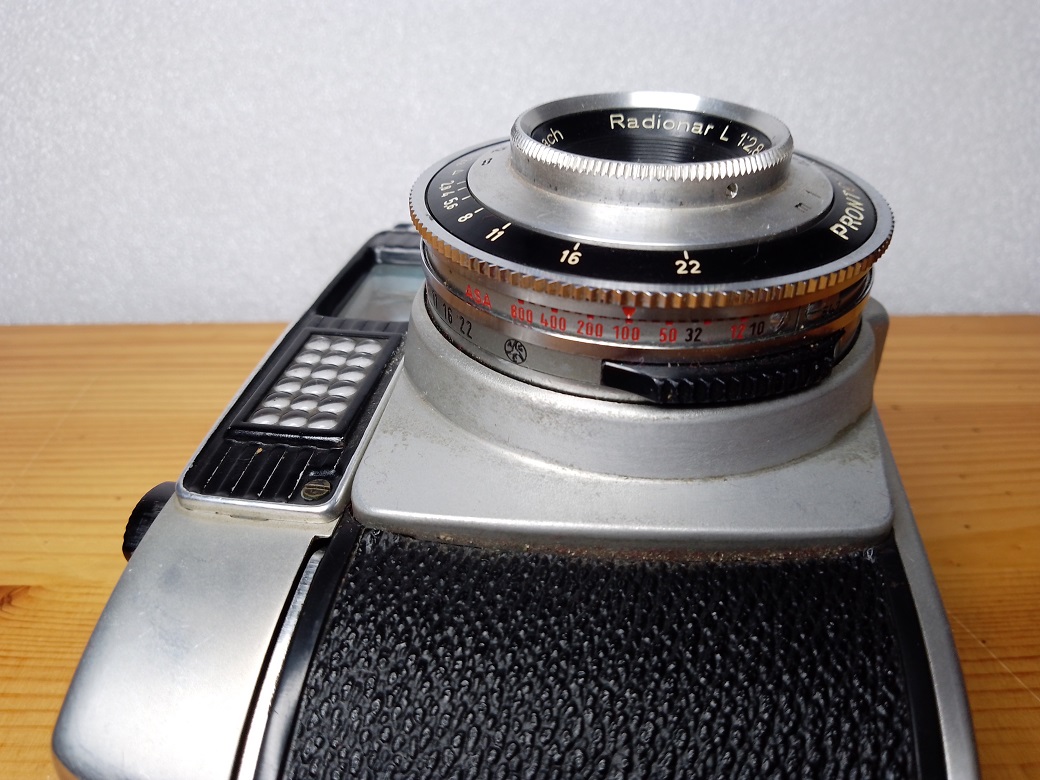 Der eingebaute Belichtungsmesser macht es dem Anwender einfach gut belichtete Fotos zu "schießen". Mit Einstellungen an den Blenden- und Zeitwahlrädern ist die rote Anzeigenadel im Kontrollfenster mit dem Ausschlag des Belichtungsmessers in Deckung zu bringen. "Fotografieren ohne Studieren!" nannte das Werbeblättchen diese recht einfache Methode. Vorher durfte natürlich nicht vergessen werden die korrekte Filmempfindlichkeit an der Kamera einzustellen.