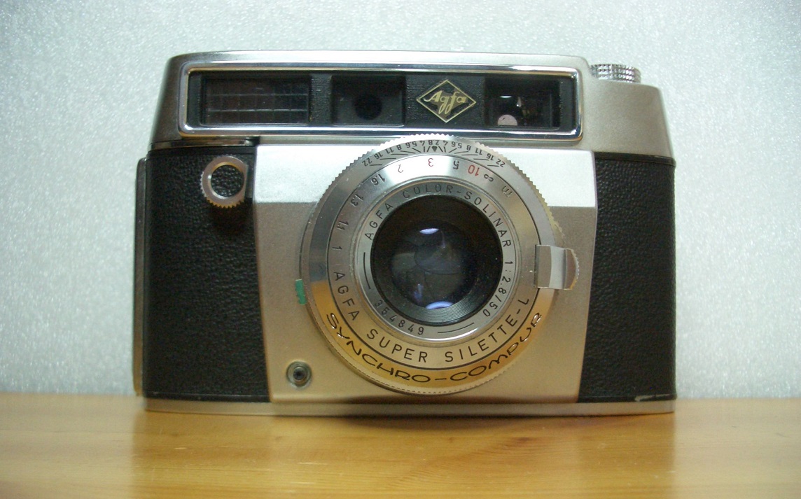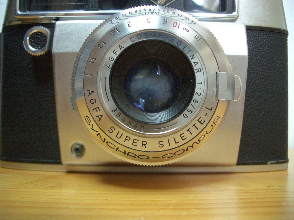 Hersteller: Agfa Kamera-Werke, München Modell: Super Silette L Baujahr: 1958 - 59 Typ: KB-Sucherkamera mit gekuppeltem Mischbildentfernungsmesser und ungekuppeltem Selenzellen Belichtungsmesser, 24 x 36 max. 36 Aufnahmen Seriennummer:YF 2615 Verschluß: SYNCHRO-COMPUR, "B" - 1/500 sec mit "X", "M" Synchronisation, Vorlaufwerk und Lichtwerten Blenden: 2,8 - 22 Objektiv: AGFA COLOR-SOLINAR 1:2,8/50, Seriennummer: 354849 Fokussierung: manuell über Mischbildentfernungsmesser, 1 Meter - unendlich Filmempfindlichkeit: 12 - 31 DIN (12 - 800 ASA) Gewicht: ca. 700 Gramm Stückzahl: ca. 25.000 Exemplare Neupreis (1958): 250,-- DM