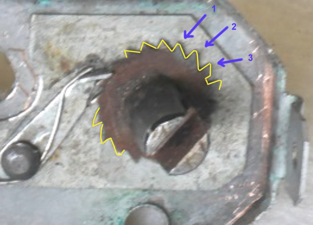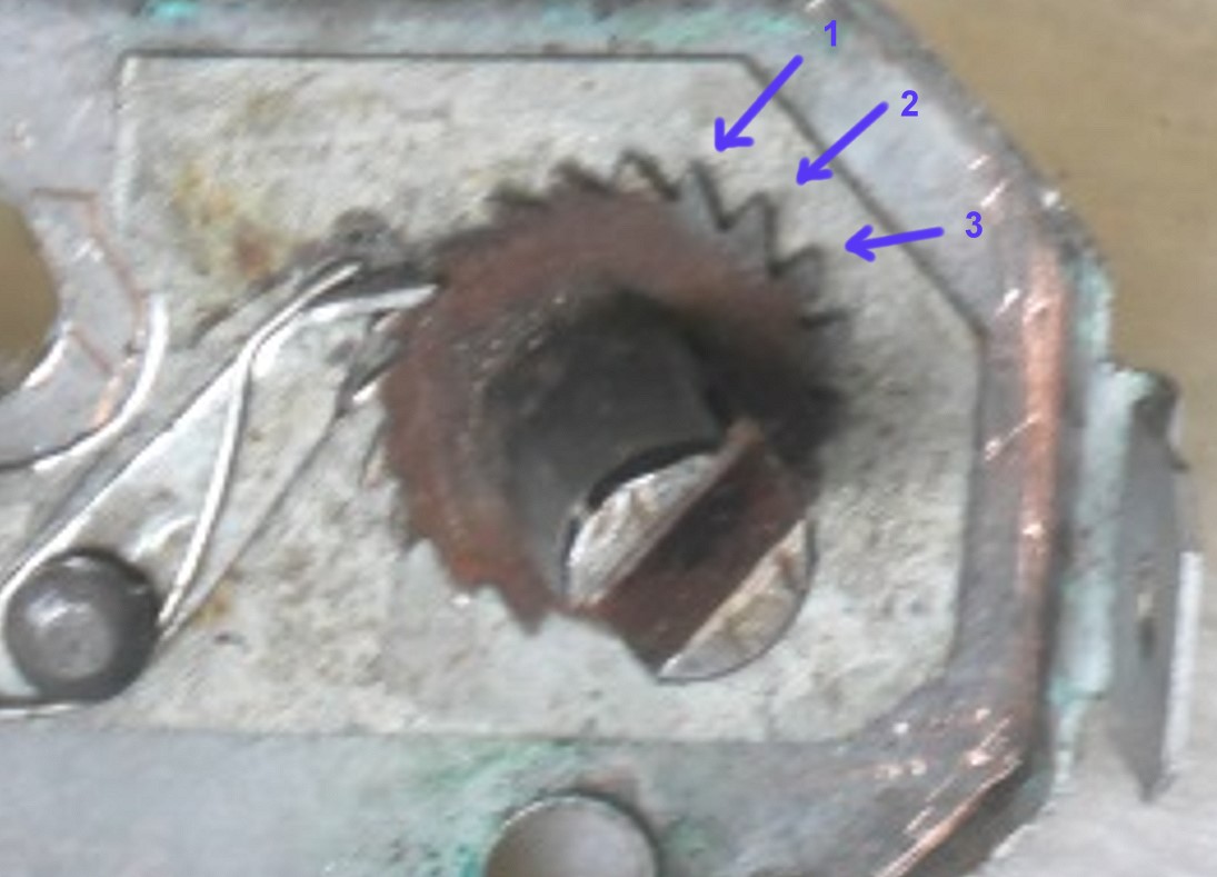 maschinell gefertigt sieht das nicht aus. Gleichmäßigkeit der Verzahnung? Fehlanzeige! Das Zahnrad wurde wohl im stillen Kämmerlein gesägt und gefeilt. Trotzdem verdient der Erbauer Respekt, dieses (Einzel)Stück erschaffen zu haben.