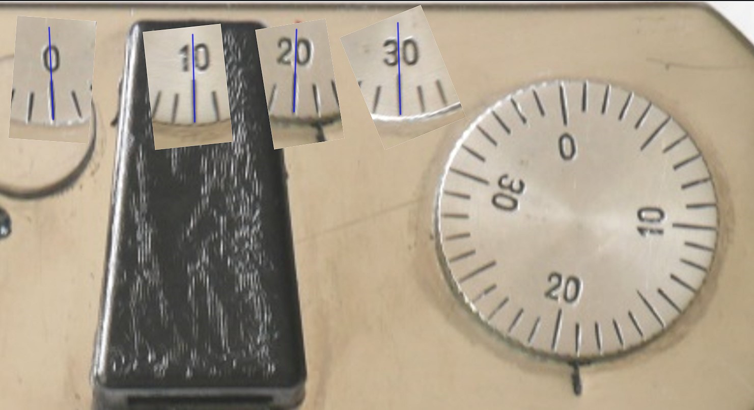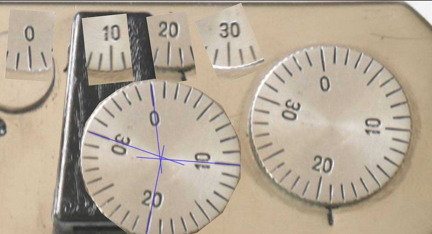 Die Zahlen liegen mehr oder weniger abweichend seitlich vom Skalenstrich
