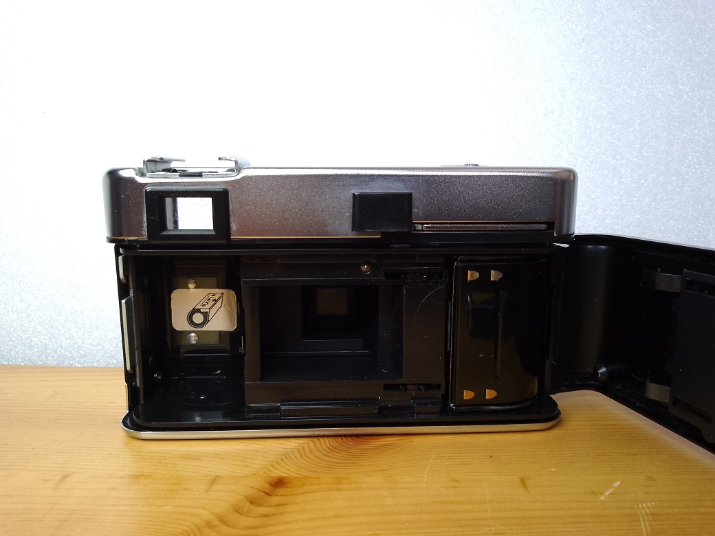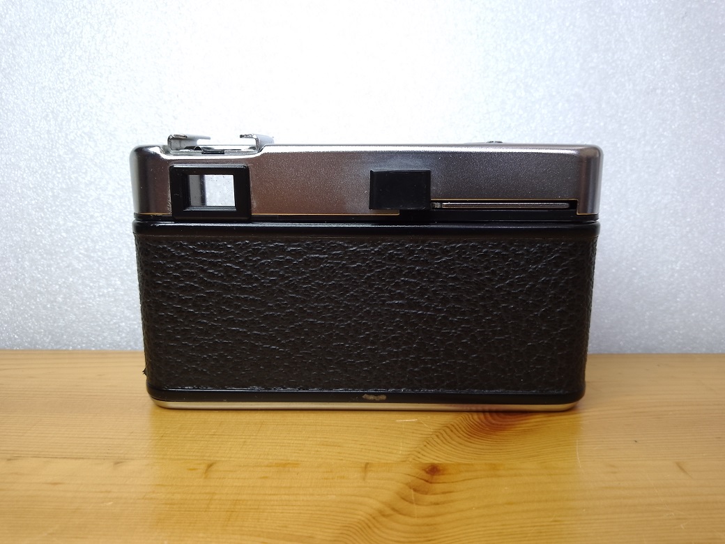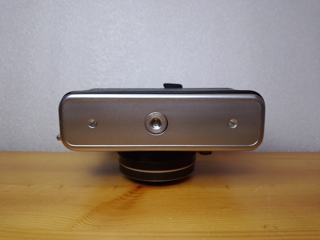 Rückseite: Sucher ohne Leuchtrahmen, Schnellspannhebel, klappbare Rückwand mit Filmandruckplatte