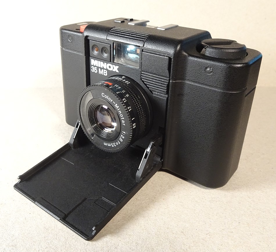 eine Variante der legendären Minox-Kompaktkamera-Serie Minox 35EL, folgende. Das gezeigte Modell hat ein gegenüber dem Erstmodell 35EL leicht geändertes Gehäuse (wie bei der 35ML und 35MDC) im Bereich der Oberschale und ein abgewandeltes Öffnungssystem zum Herausschieben der Objektiv-Einheit. Weiter wurde auch ein Selbstauslöser integriert.
