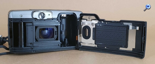 Hier die Daten: Kleinbild-Kamera für 135er KB-Film (Aufnahmeformat: 24 x 36 mm) Gebaut ab 1995 Objektiv 1:5,6-7,8/28-70 mm, 8 Elemente in 7 Gruppen Autofokus mit Fokussperre, min. Fokus 0,45m im Makromodus Elektronischer Zentralverschluss, 2 s - 1/590 s Größe: 123 x 64 x 44 mm, Gewicht: 230 gr. ohne Akku Automatischer Filmtransport mit automatischem Filmladesystem Autofokus Eingebauter Blitz: bis 3,3 Meter (auto, ein/aus, Vorblitz) Automatische DX-Codierung (25-3200 ISO) Datenrückwand Mehrere Programm-Modi (Action, Nacht, Makro, Portrait, Spot)