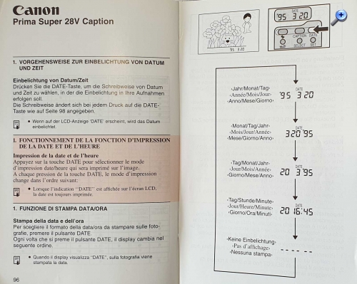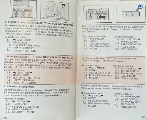 Die Modellvariante mit dem Namenszusatz „CAPTION“ bot zusätzlich die Möglichkeit, das Datum und lustige Botschaften (englisch, französisch oder deutsch) ins Foto einzublenden.