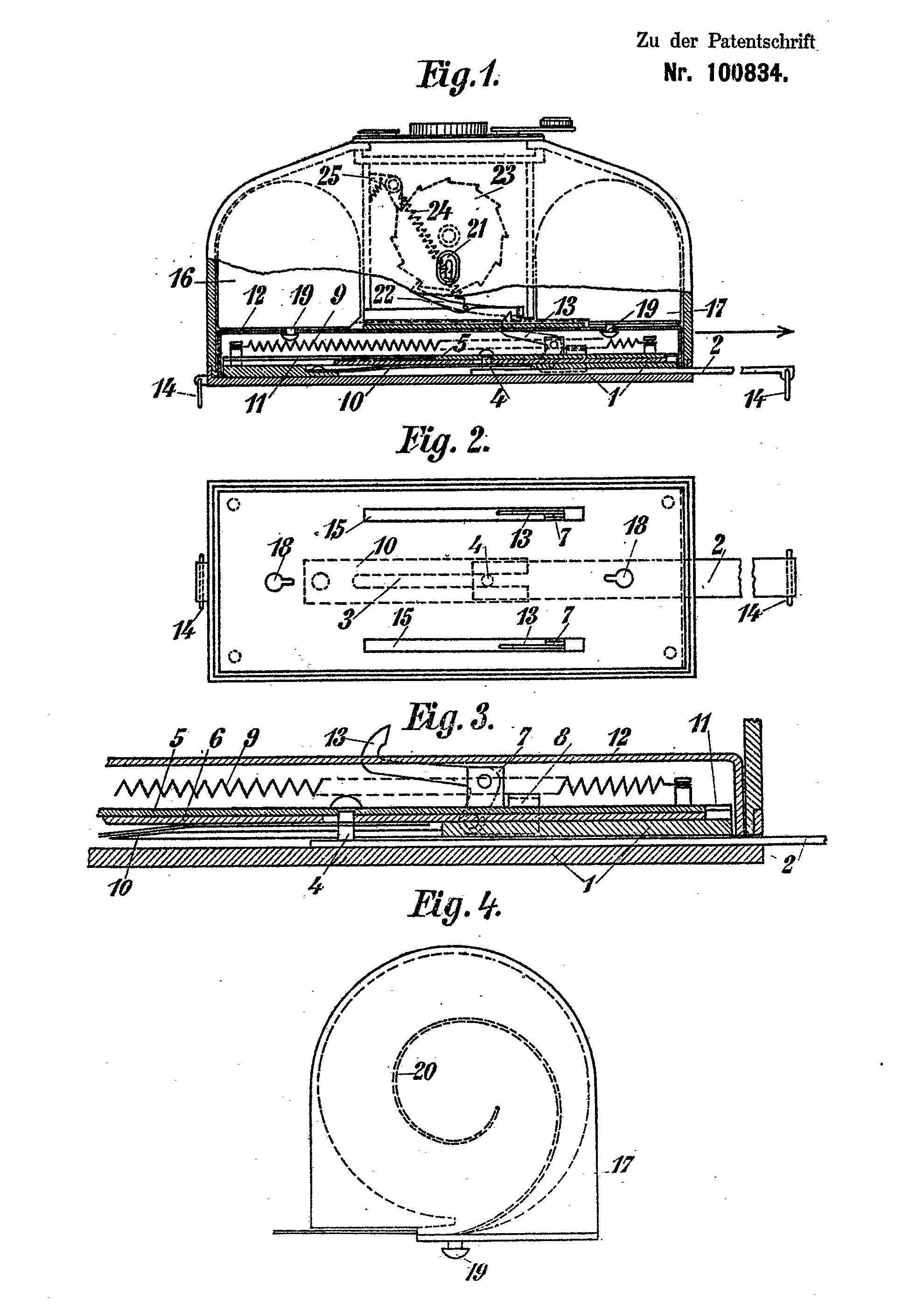 Die Amourette wurde von der Österreichischen Telefon AG (O.T.A.G.) im Jahr 1925 vorgestellt, also im gleichen Jahr wie die Unette von Ernemann (von der im Forum schon ein Nachfolgemodell von Jan vorgestellt wurde: https://blende-und-zeit.sirutor-und-comp...&thread=100) und natürlich wie die Leica von Leitz. Konstruiert wurde die Kamera von Jacques Singer in Wien, der die Greifvorrichtung für den Filmtransport der Amourette am 20. Juli 1923 zum Patent anmeldete und in den Jahren 1924/25 verschiedene Patente in Deutschland, Frankreich, Österreich und der Schweiz für die Kamera und einzelne Komponenten der Konstruktion erhielt. In welcher Beziehung Jacques Singer zum Hersteller Österreichischen Telefon AG (O.T.A.G.) stand, konnte ich nicht herausfinden, aber die O.T.A.G. meldete am 8. Januar 1925 eine Greifvorrichtung für den Transport von perforierten Filmen zum Patent an (Patenterteilung: 15. Mai 1925) und eben diese Greifvorrichtung der O.T.A.G. ist in der Amourette (zumindest in meinem Exemplar) verbaut. Hier mal die Patentzeichnung zum Österreich. Patent von Jacques Singer: