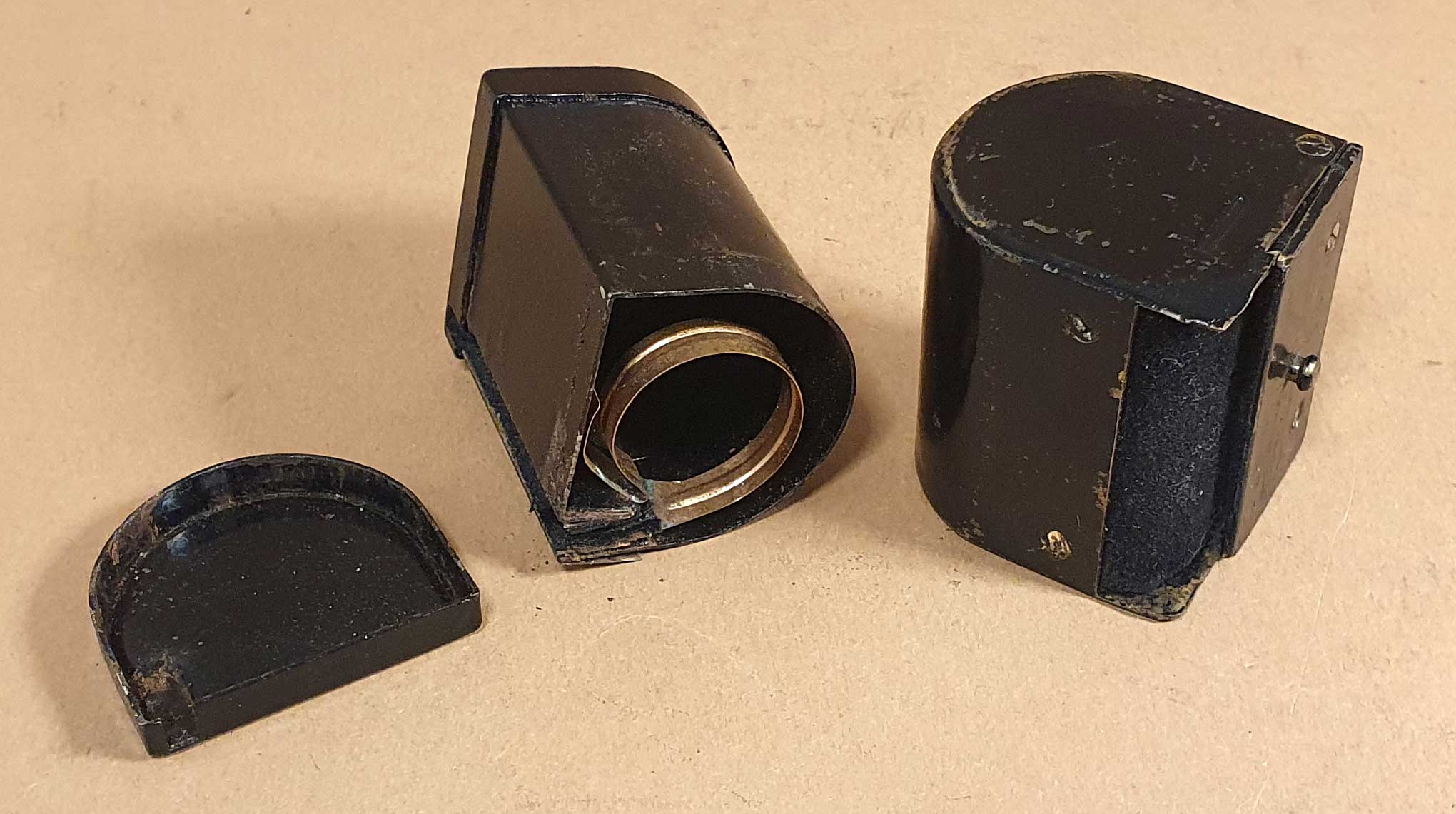 Mein Exemplar verfügt über zwei Patronen, von denen eine original zur Amourette gehört. Die andere Patrone ist eine leicht modifizierte Agfa-Patrone. Beim Beladen der Agfa-Patrone (Abwickelpatrone) traten die ersten Komplikationen auf. Im Inneren der Patrone befinden sich zwei Federösen, die den Film beim Transport straff halten sollen. Den frischen Film im Dunkeln in diese Ösen hineinzufummeln war durchaus schwierig und kostete mich schon mal 20 cm vom Film. Die originale Amourette-Patrone lässt sich nicht so einfach öffnen, sondern ist durch mehrere Schräubchen fest verschlossen. Im Inneren dieser Patrone befindet sich nur eine mittig angeordnete Federöse. Der Film muss eigentlich nur in die Patrone eingesteckt werden und wickelt sich dann beim Vorspulen von selbst auf. Das schien auch recht gut zu funktionieren, doch jedes Mal, wenn ich munter drauflos fotografieren wollte, stoppte nach dem zweiten Bild der Filmvorschub in der Aufwickelpatrone und die Vorschubgreifer zerstörten die Perforation. Egal in welche Form (rund, spitz, gerade) ich das Filmende vorher geschnitten hatte, es trat immer wieder das gleiche Problem auf. Im Endeffekt habe ich gänzlich auf die Aufwickelpatrone verzichtet, aber der Ärger mit dieser Patrone koste mich nochmal 50 cm Filmlänge. Nachdem der Film dann endlich richtig lief, blieb gerade noch genügend Film für 14 Aufnahmen übrig.