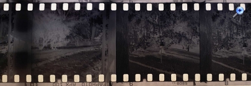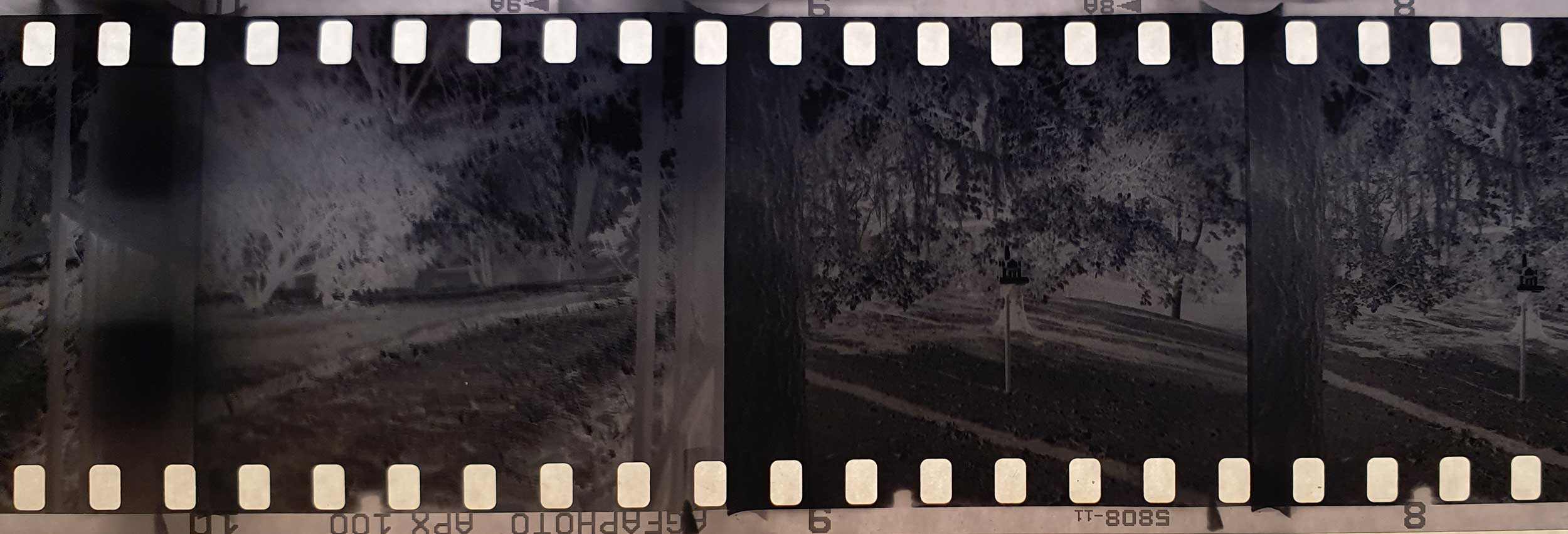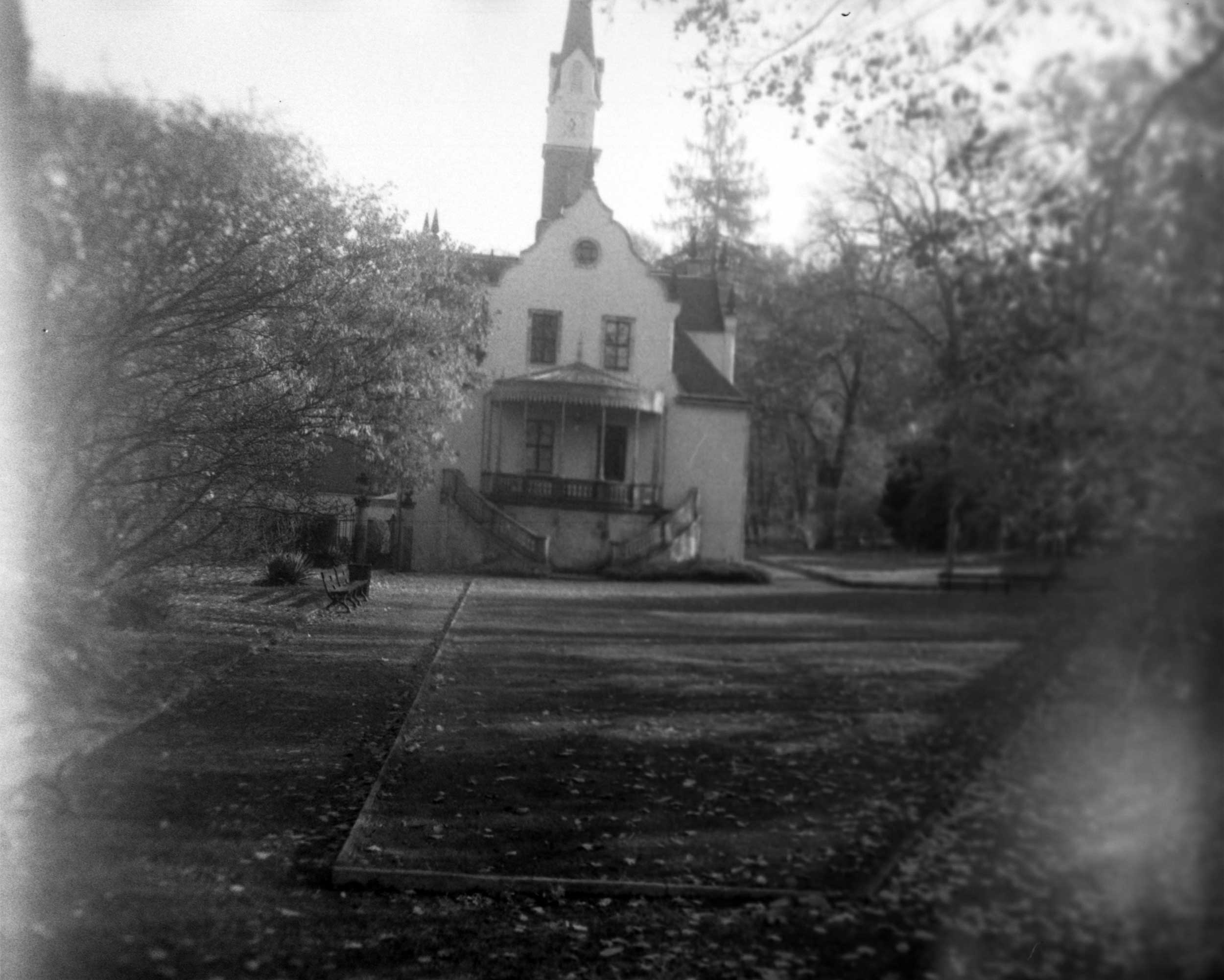 Die entwickelten Bilder sind alle stark überbelichtet. Mir war schon beim Testen des Verschlusses aufgefallen, dass er recht träge schien und ich hatte das auch bei den Aufnahmen berücksichtigt, aber offensichtlich ist er noch wesentlich langsamer als gedacht. Der Filmtransport der Kamera funktioniert sehr gleichmäßig, wobei die Abstände zwischen den Aufnahmen extrem gering sind und die Bilder vereinzelt auch etwas überlappen. Die entwickelten Negative zeigen weiterhin, dass an irgendeiner Stelle Licht durch die Rückwand eintritt. Davon ist (bis auf eine Ausnahme) jedes der Bilder betroffen. Eine Testaufnahme möchte ich hier trotzdem beifügen: