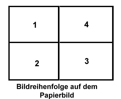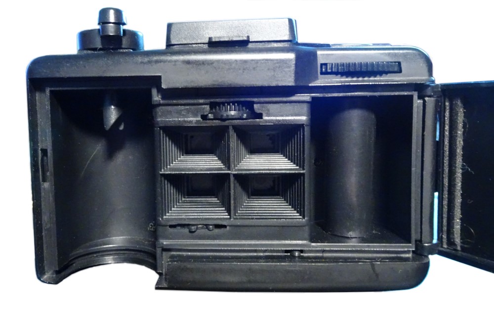 Die Kamera ist eine einfache (fast) Spielzeug-Konstruktion, die schnell nacheinander 4 Aufnahmen auf der Fläche eines KB macht.