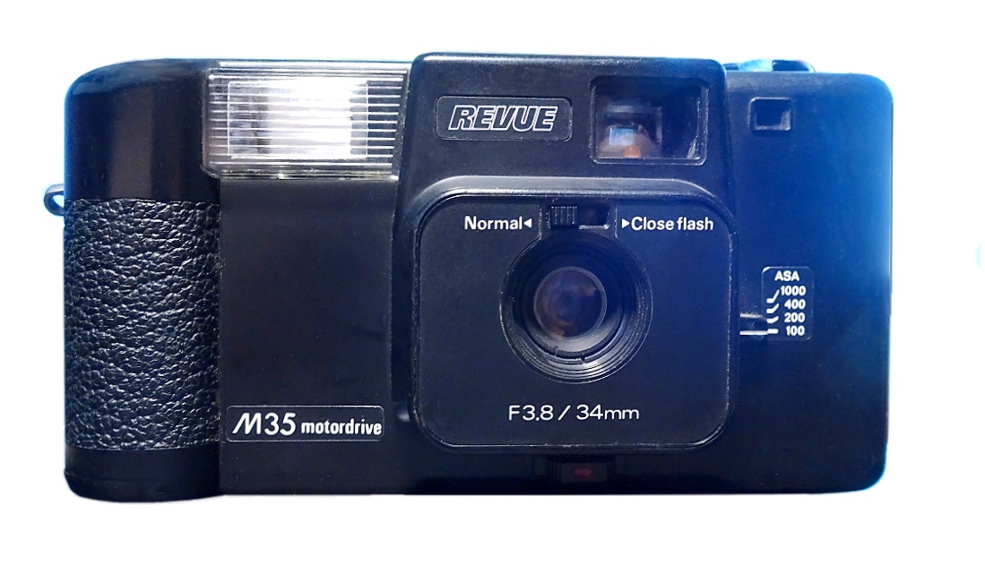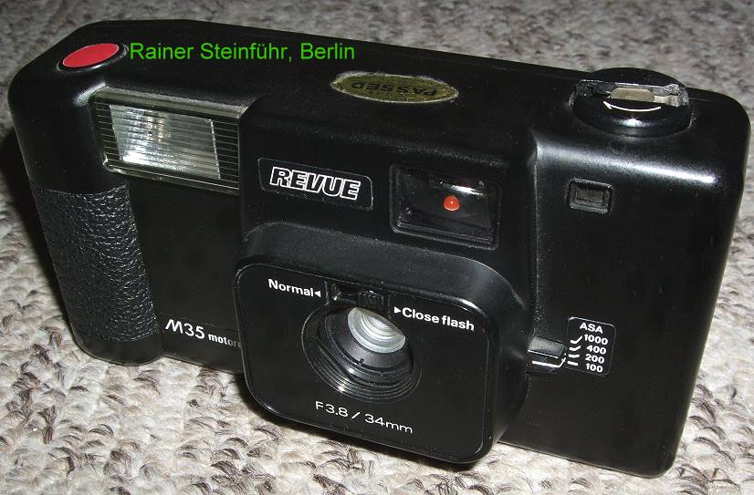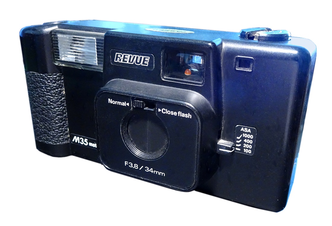 Auch die Google Bildersuche bringt keine Ergebnisse. Dabei hat die Revue M35 Motordrive ein nahezu Alleinstellungsmerkmal: Der eingebaute Blitz befindet sich LINKS vom Objektiv. Die meisten Kameras haben den Blitz rechts vom Objektiv (vom Motiv betrachtet).