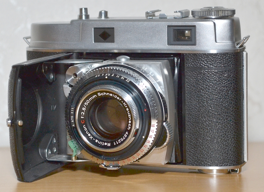 Hier noch ein paar technische Details: · Typ: Faltenbalg-Meßsucherkamera für Kleinbildfilm · Baujahr: 1957 - 1959 · Objektiv: Schneider - Kreuznach Retina Xenon C 2,8/50 Satzobjektiv · Verschluss: Synchro Compur 1/1 - 1/500; B - blitzsynchronisiert mit Vorlaufwerk · Schnellschalthebel auf der Kameraunterseite · Lichtwerteinstellung · Zubehörschuh · Stativgewinde in Aufnahmerichtung links (es gab einen Adapter für eine mittige Montage) · Bildzählwerk mit automatischer Blockierung bei Filmende