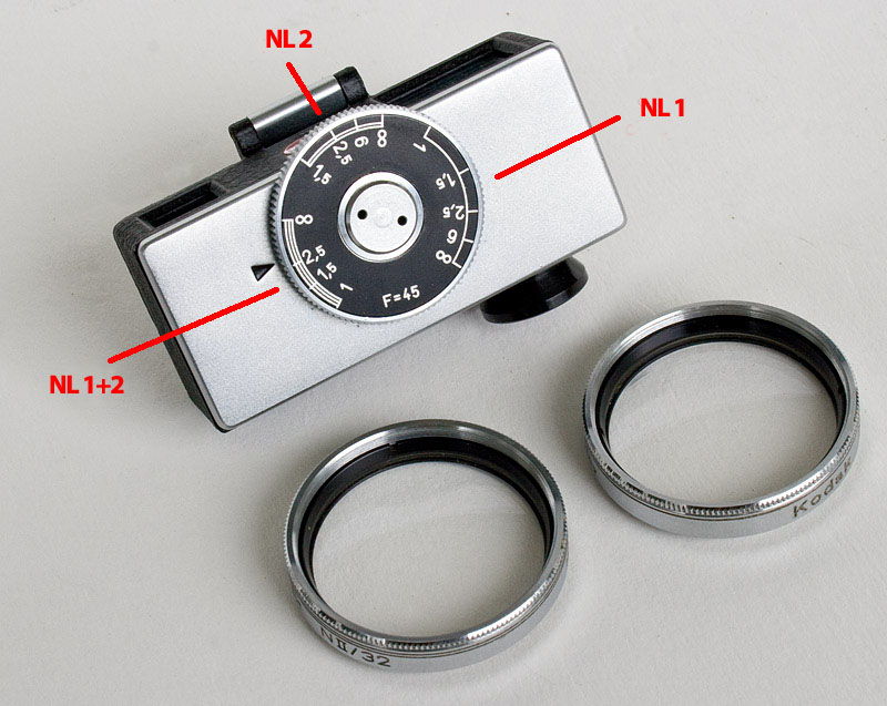 Nachtrag (Berichtigung) Nahlinse I deckt den Bereich von ca. 90 - 50 cm, NL II von ca. 45 - 30 cm, NL I+II von ca. 28-22 cm ab.
